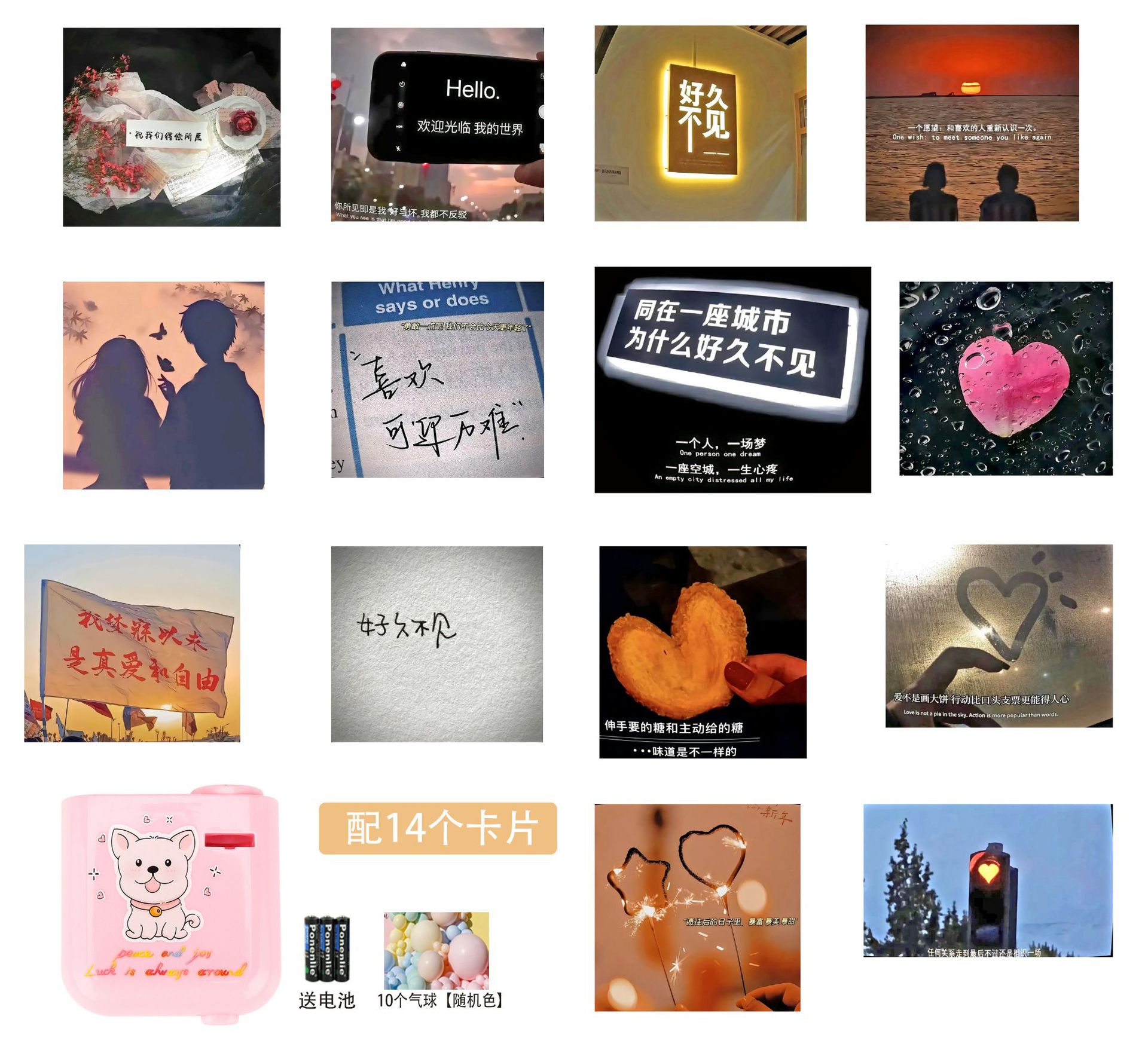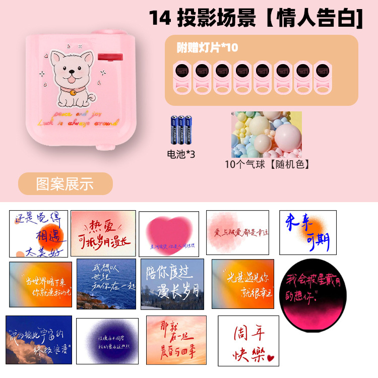 • 핑크 프로젝터 + 14 카드 [고백 텍스트] + 풍선