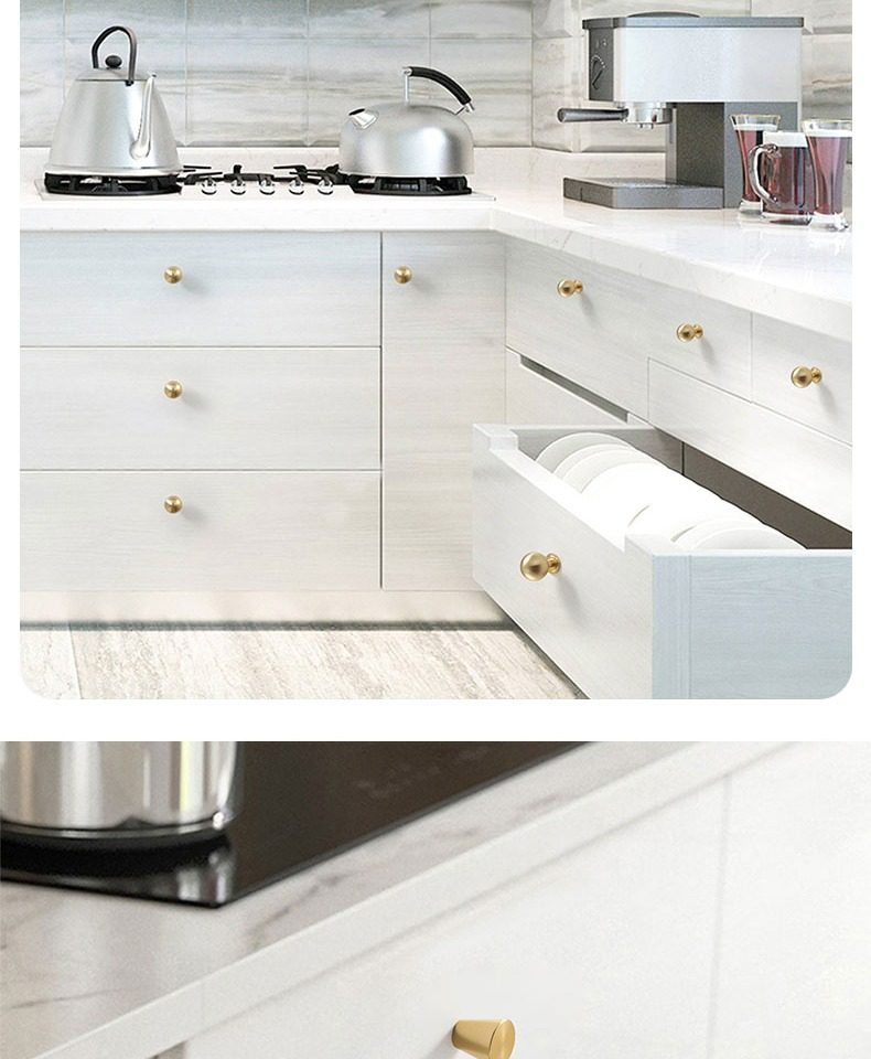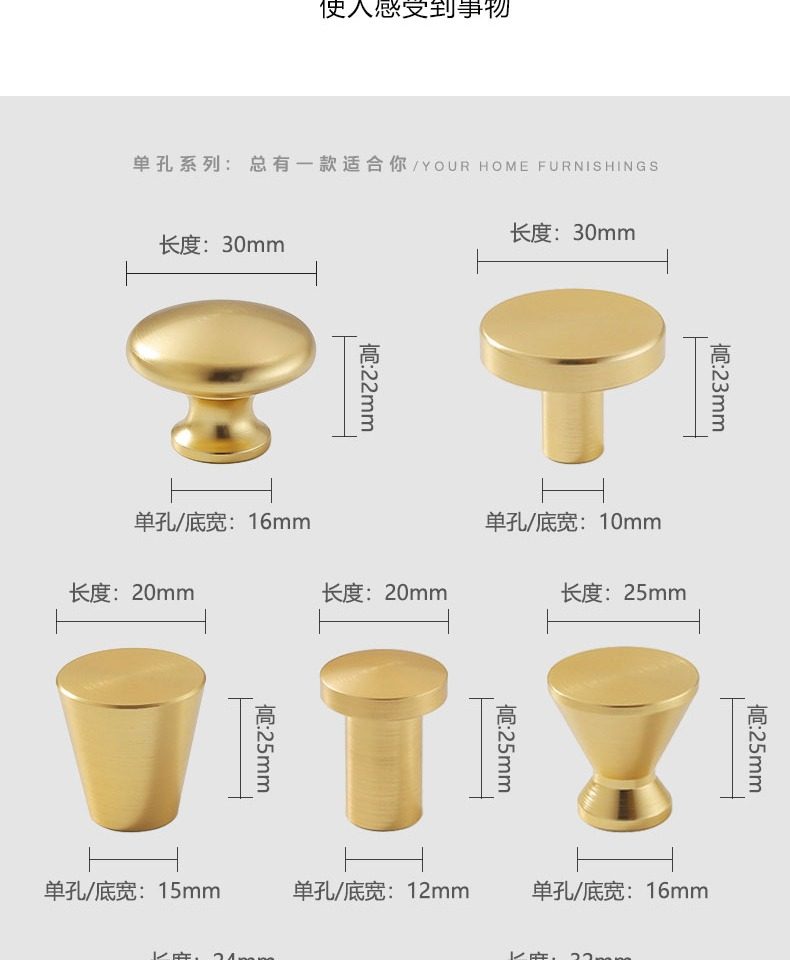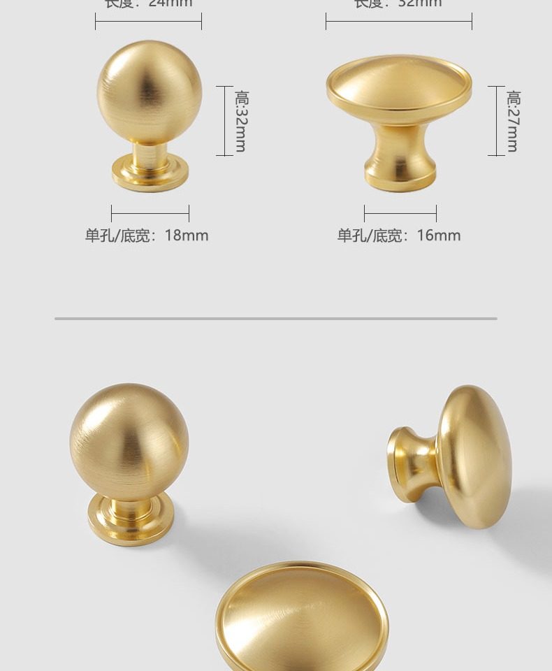 황동 색상 솔리드 캐비닛 도어 핸들 라이트 럭셔리 옷장 캐비닛 서랍 캐비닛 핸들 라운드 단일 구멍 핸들 골드