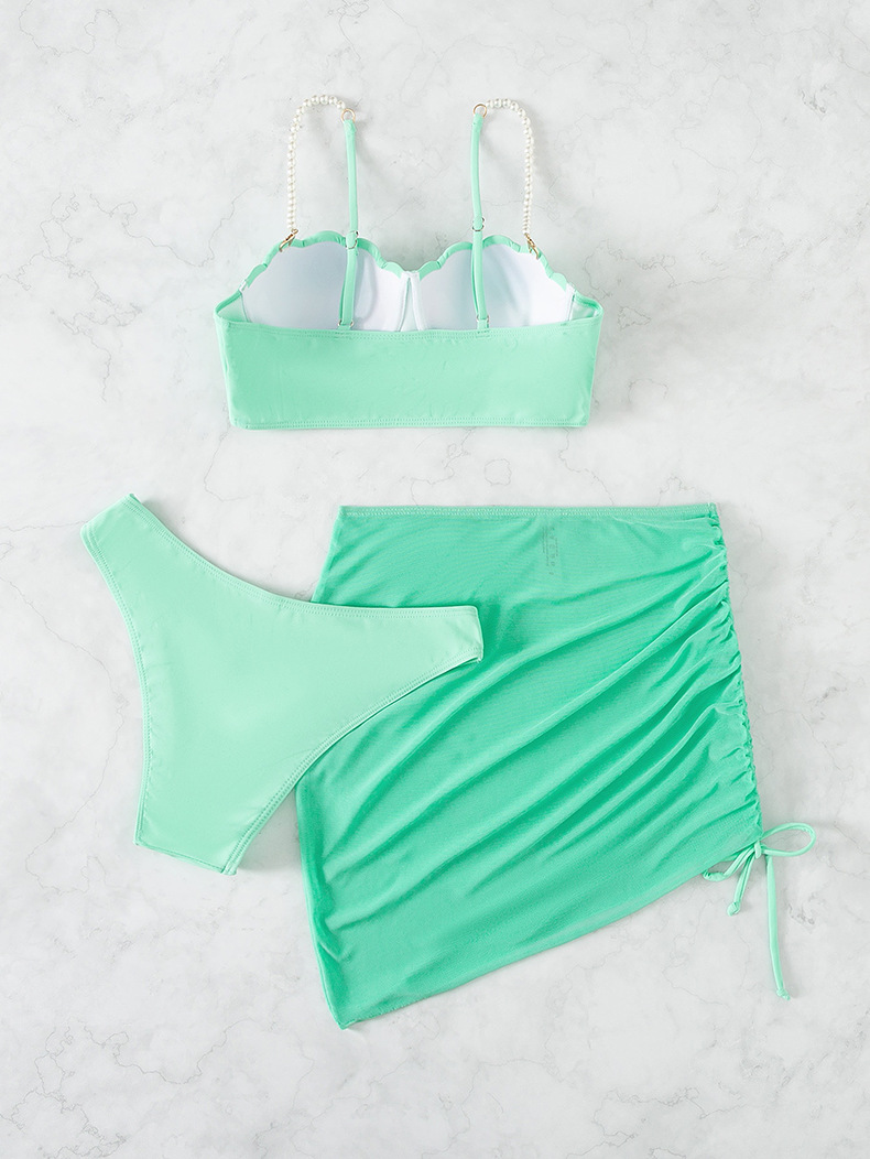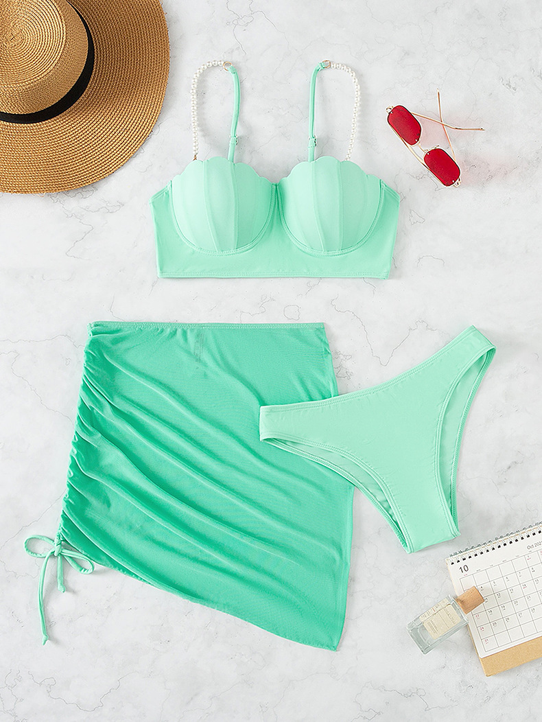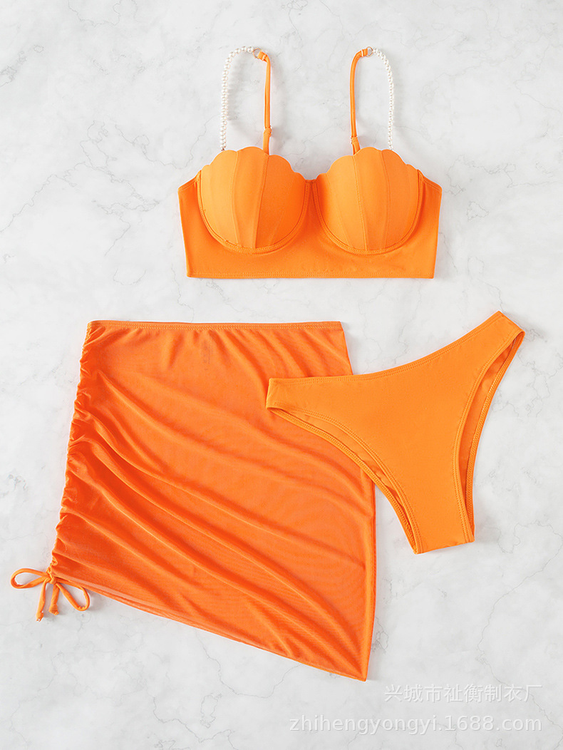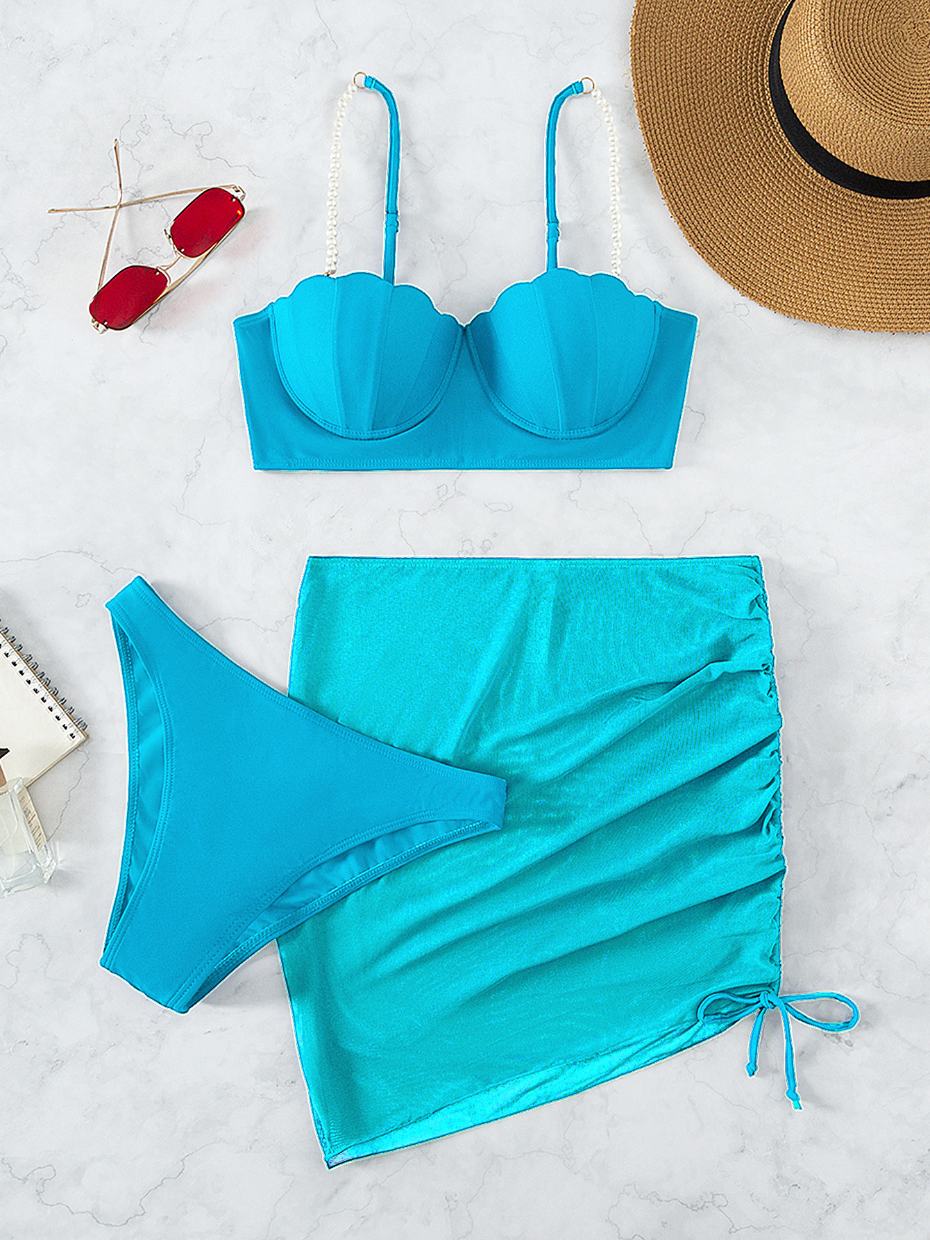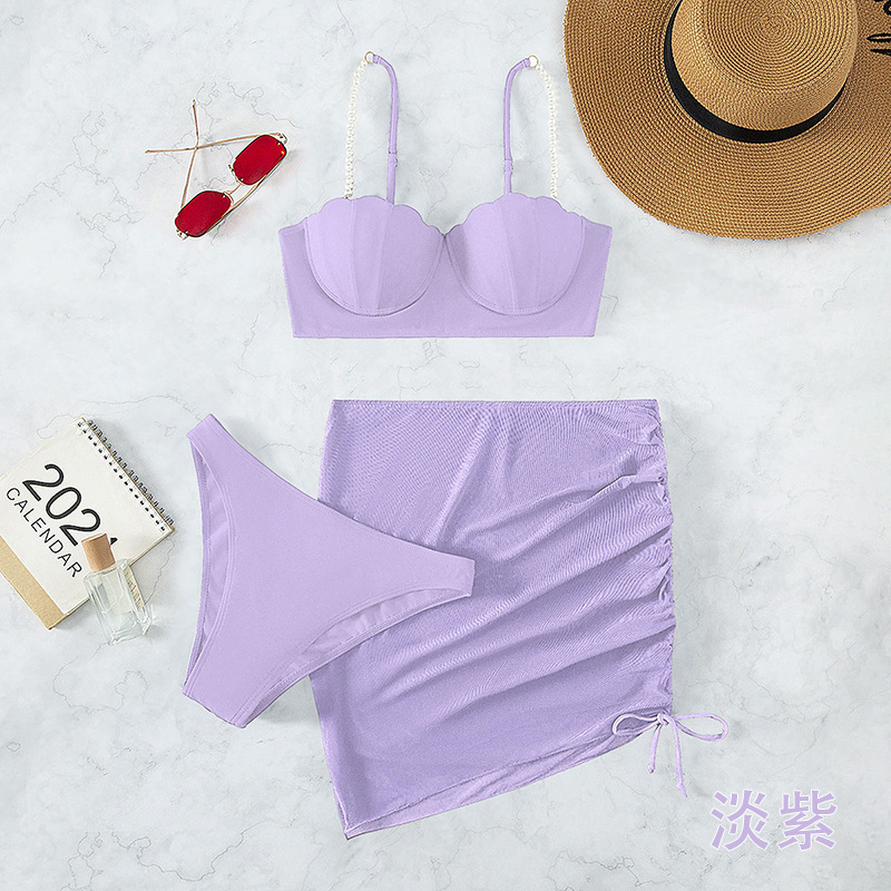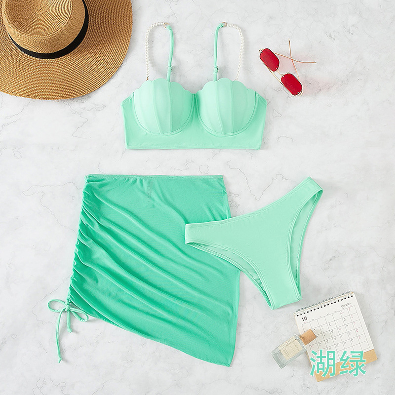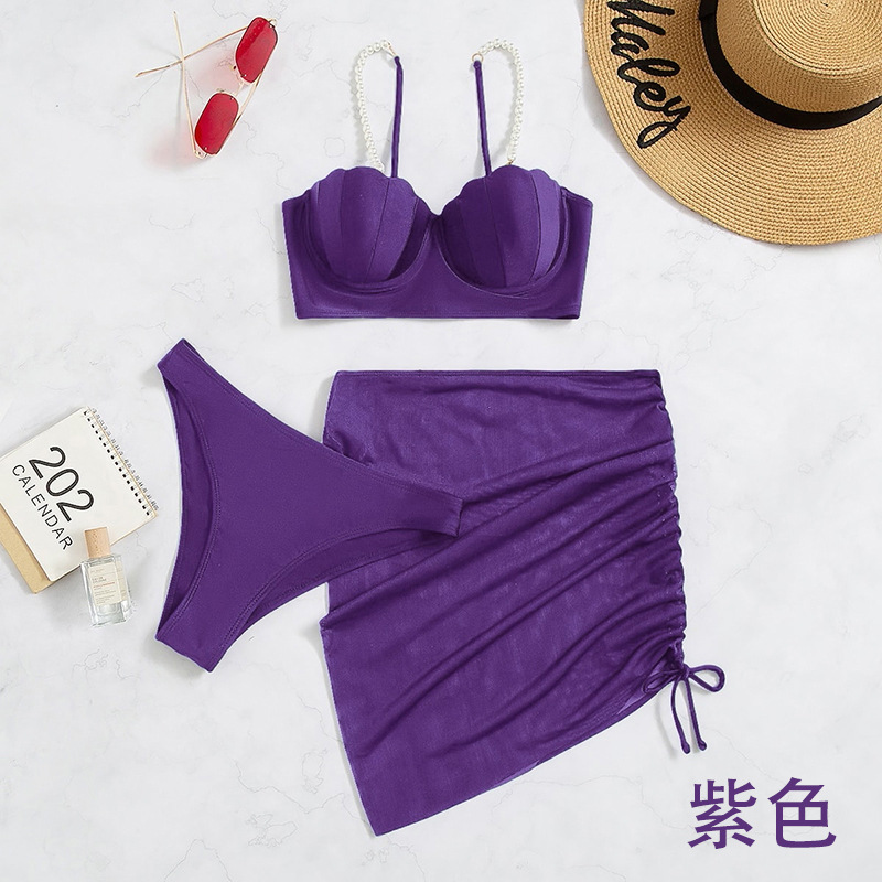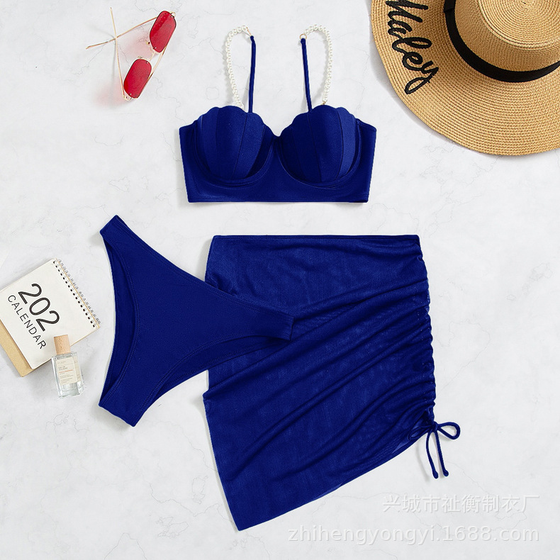2022 새로운 수영복 여성용 3 피스 솔리드 컬러 여름 선 스크린 비키니 크로스 보더 유럽과 미국 비키니 수영복 도매