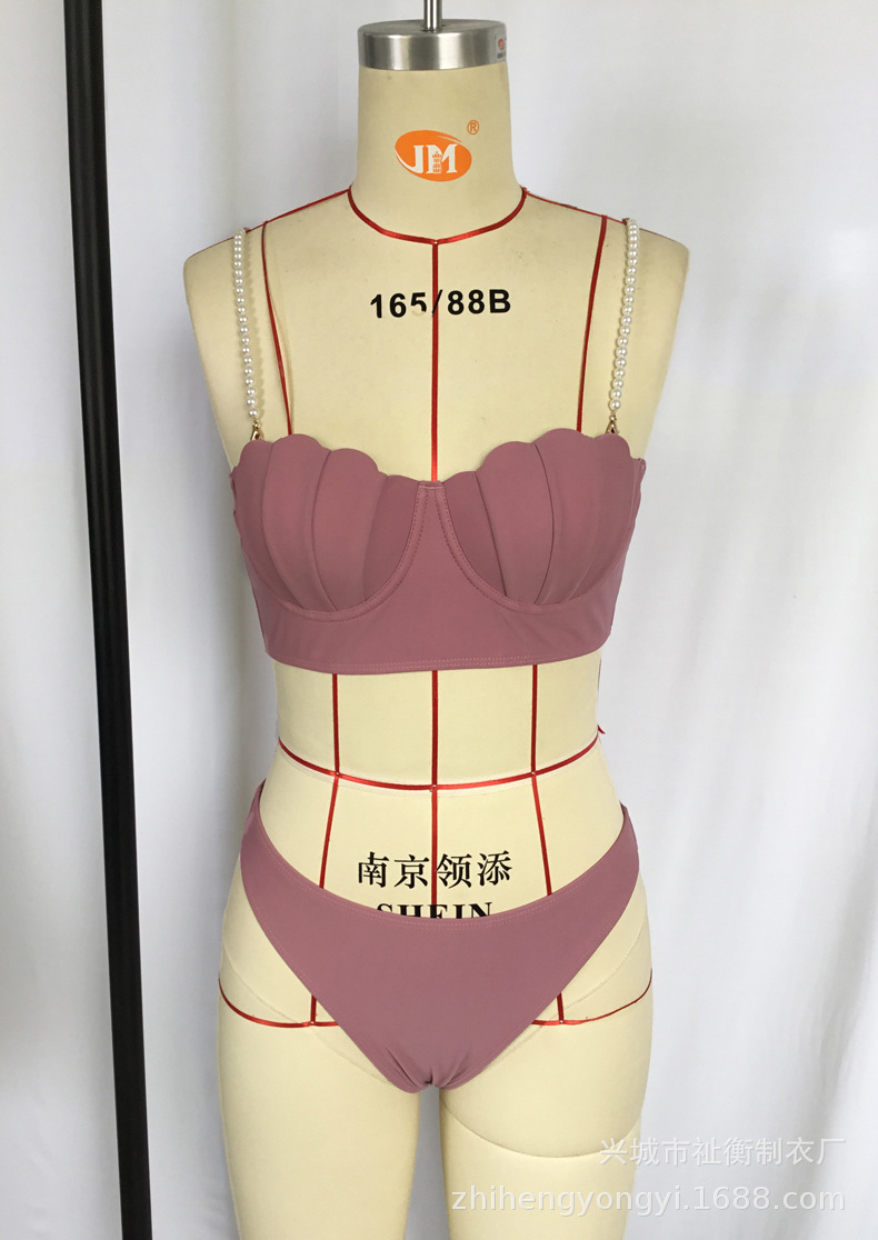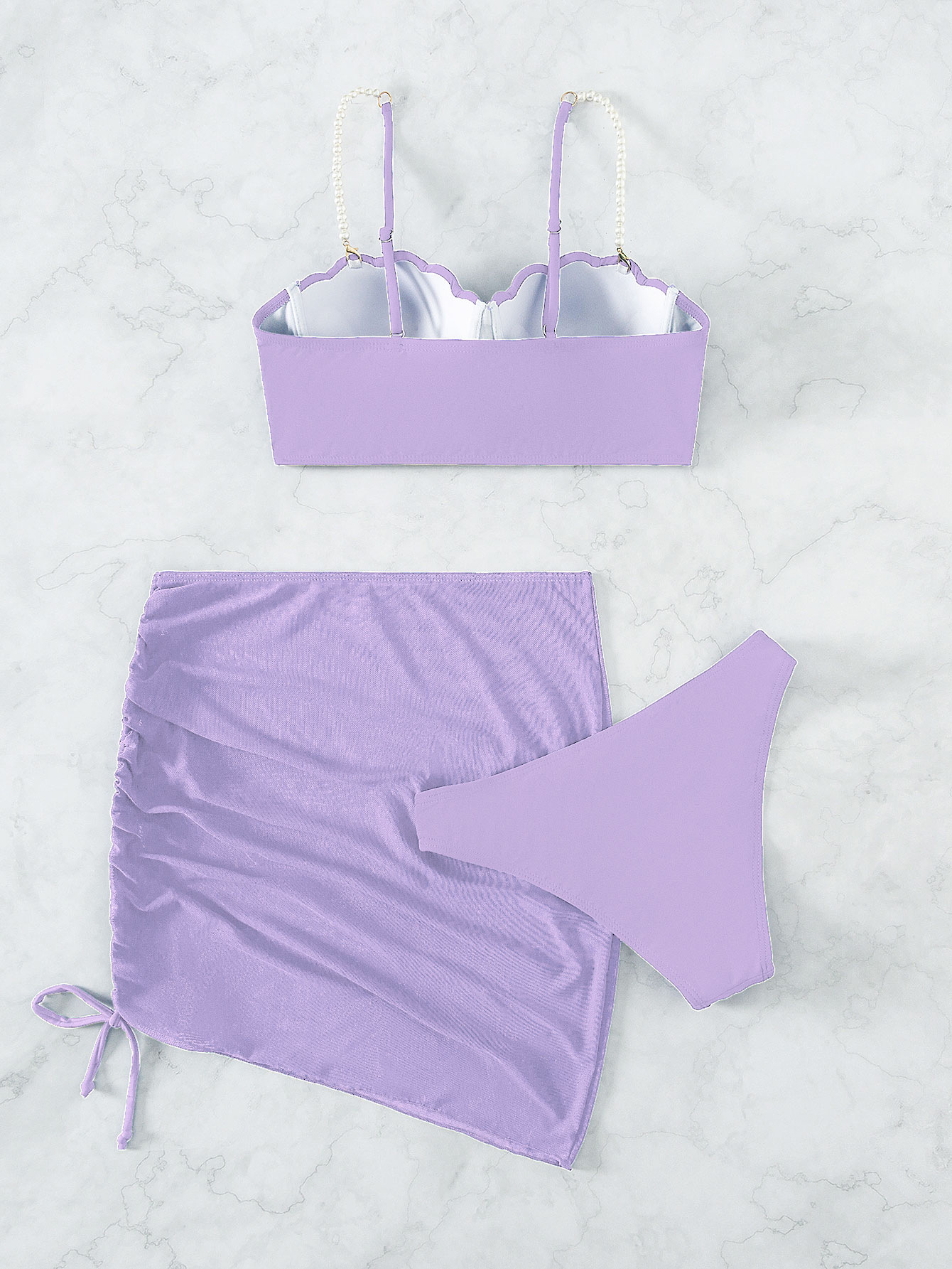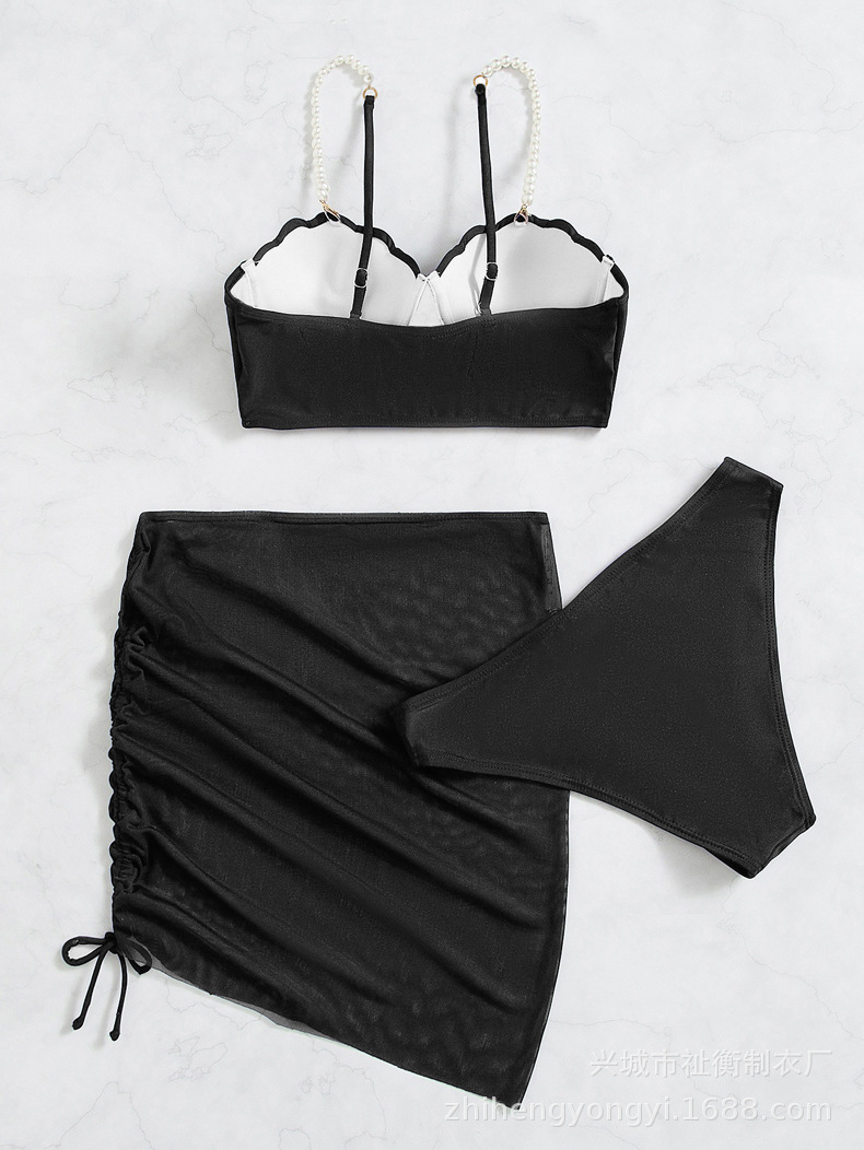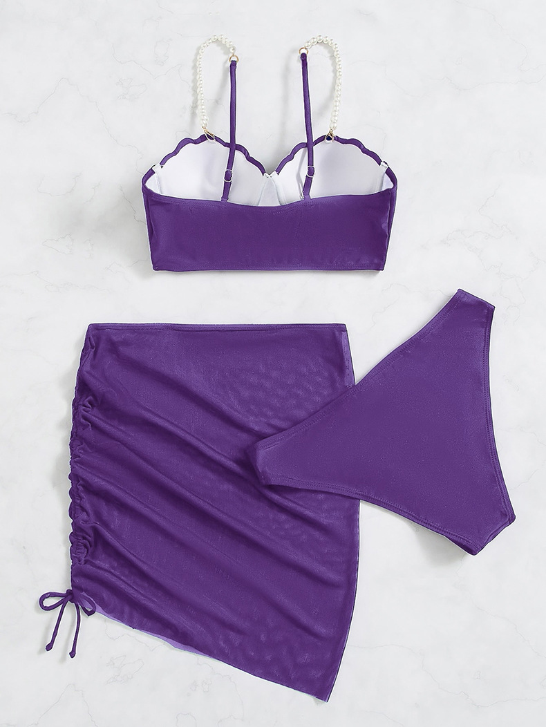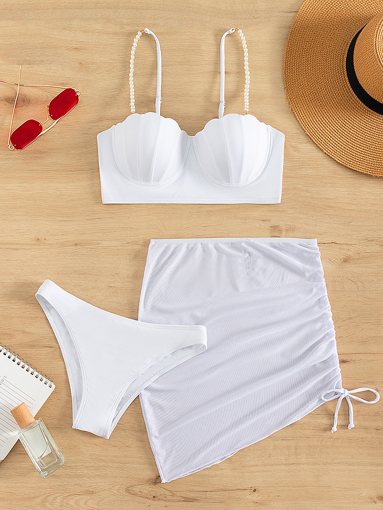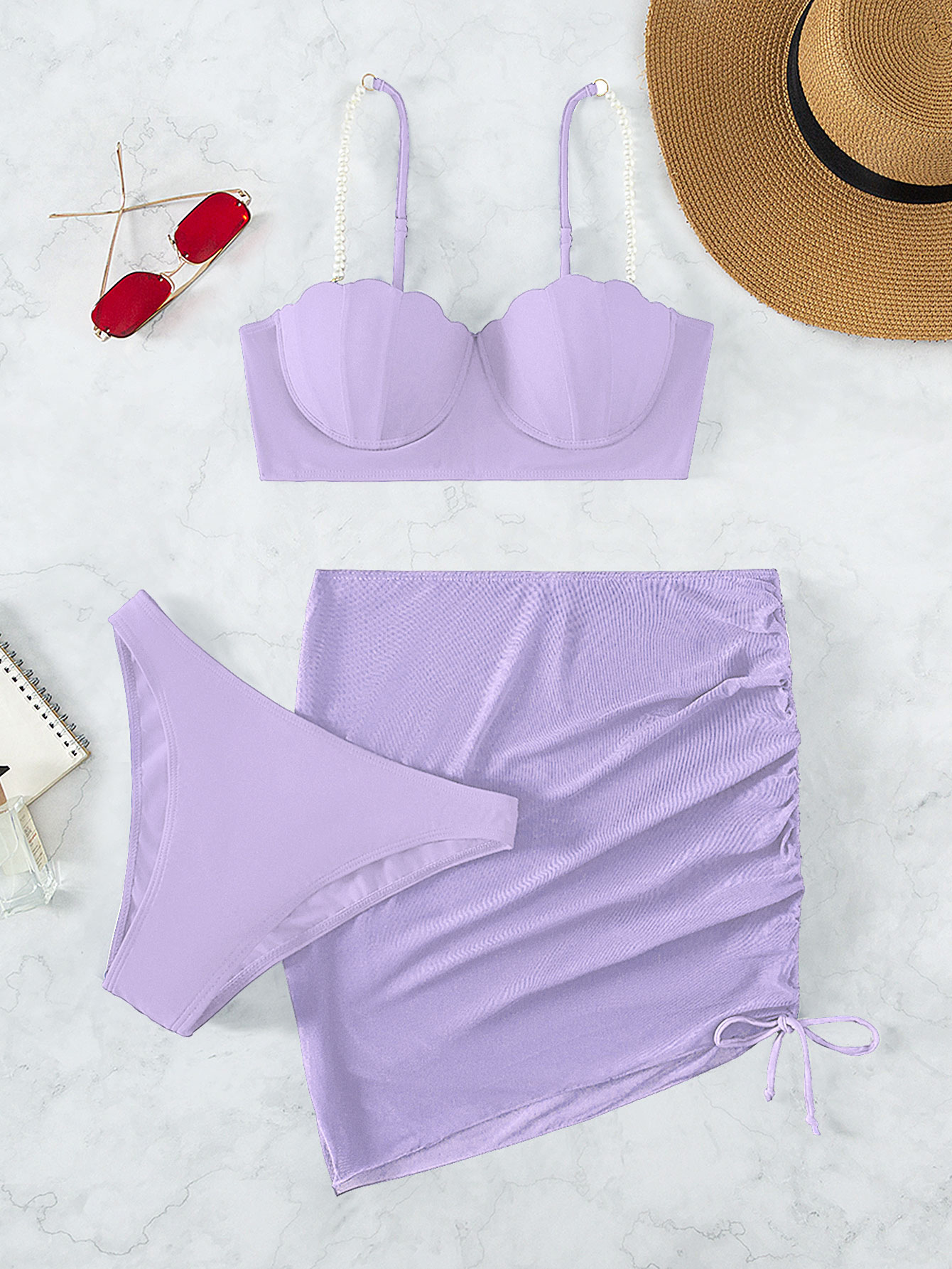 2022 새로운 수영복 여성용 3 피스 솔리드 컬러 여름 선 스크린 비키니 크로스 보더 유럽과 미국 비키니 수영복 도매