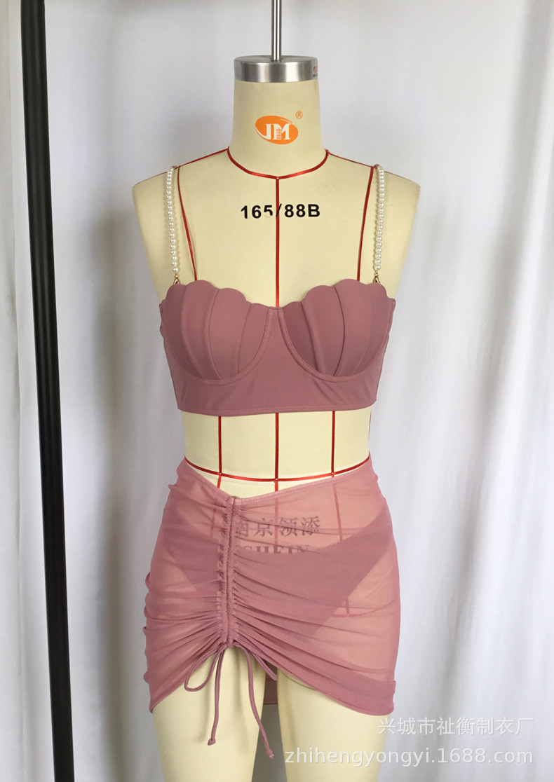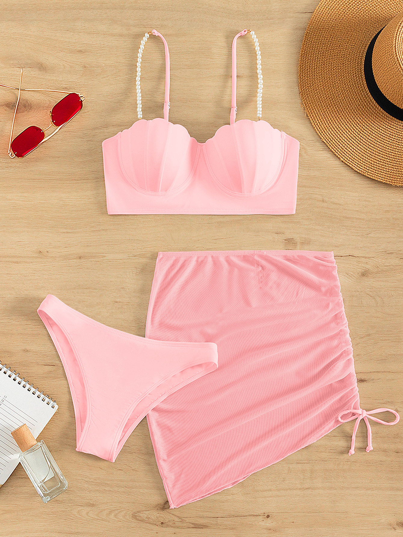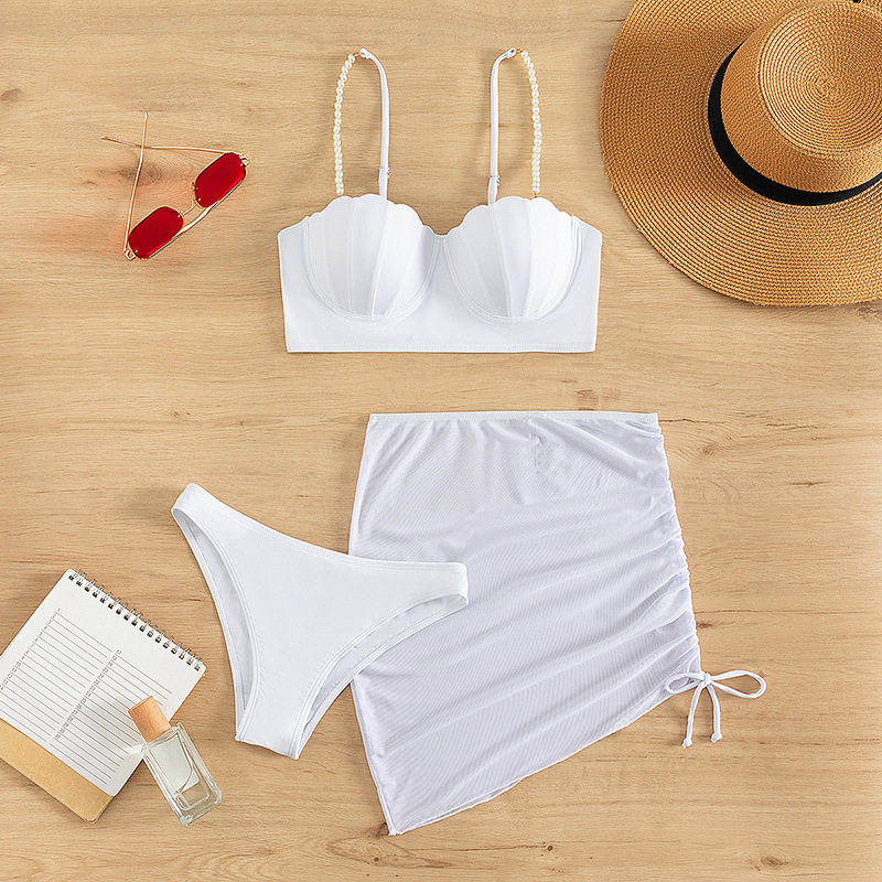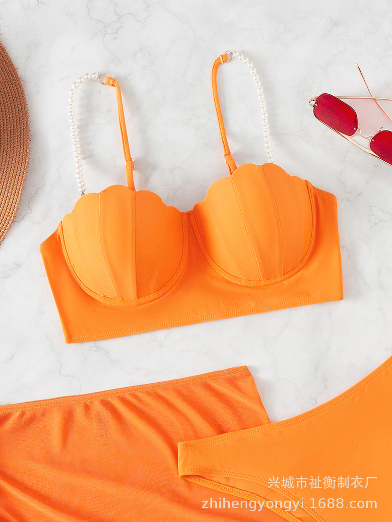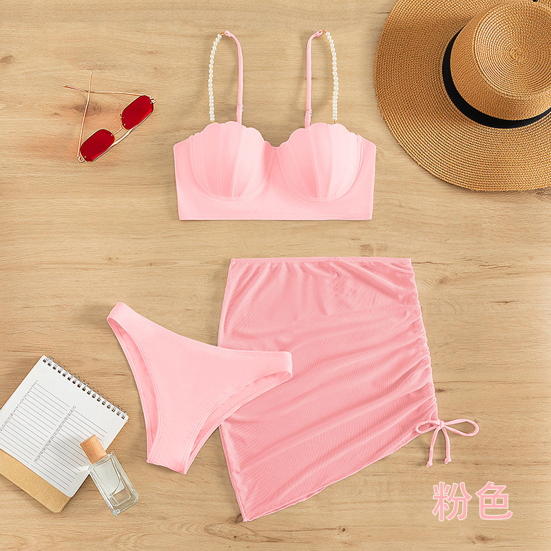 2022 새로운 수영복 여성용 3 피스 솔리드 컬러 여름 선 스크린 비키니 크로스 보더 유럽과 미국 비키니 수영복 도매스토어 가기