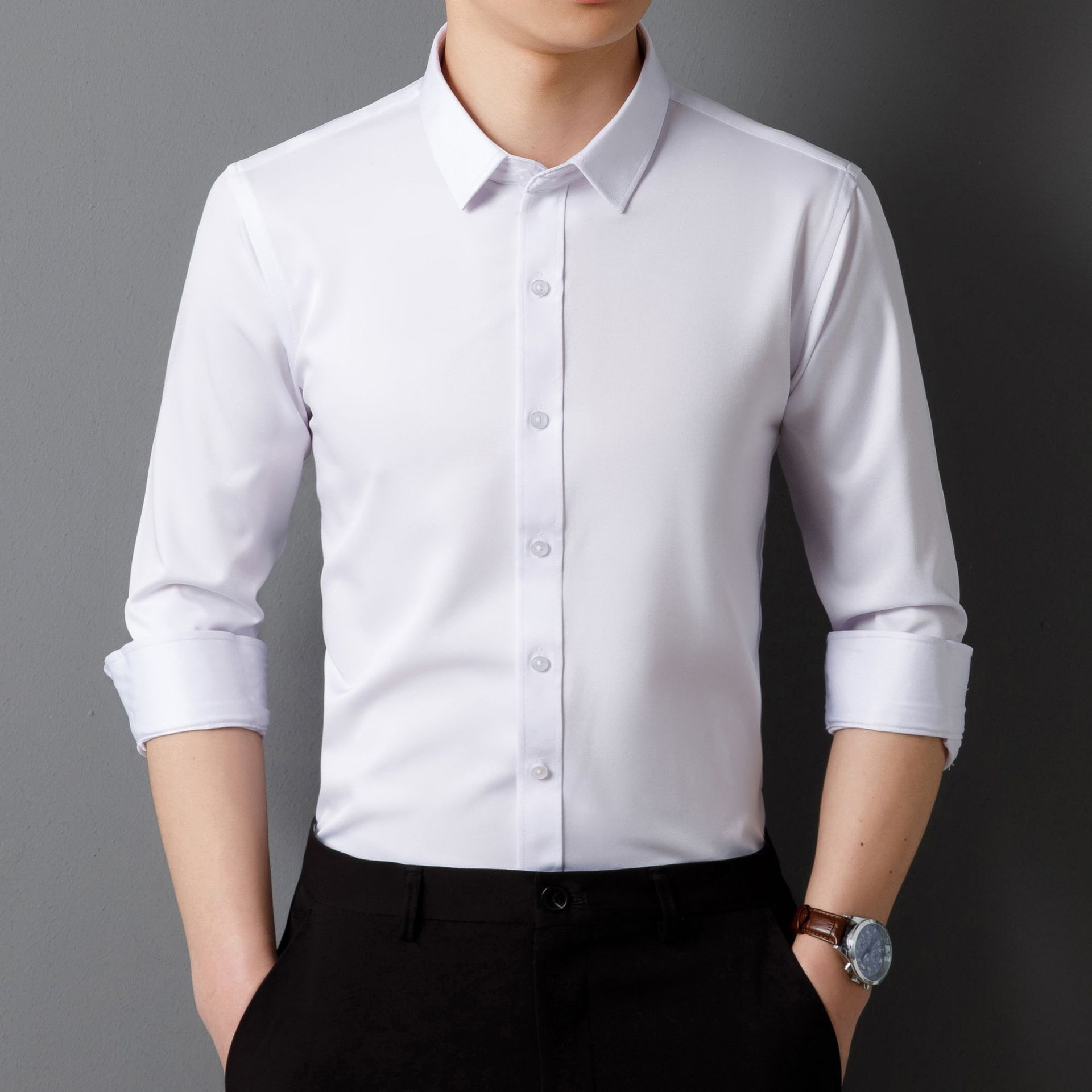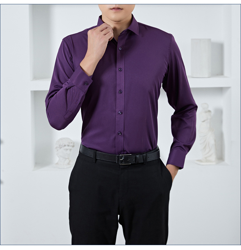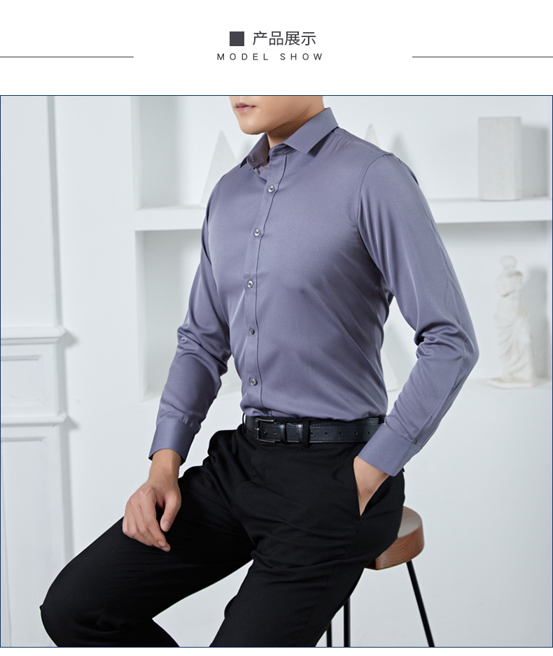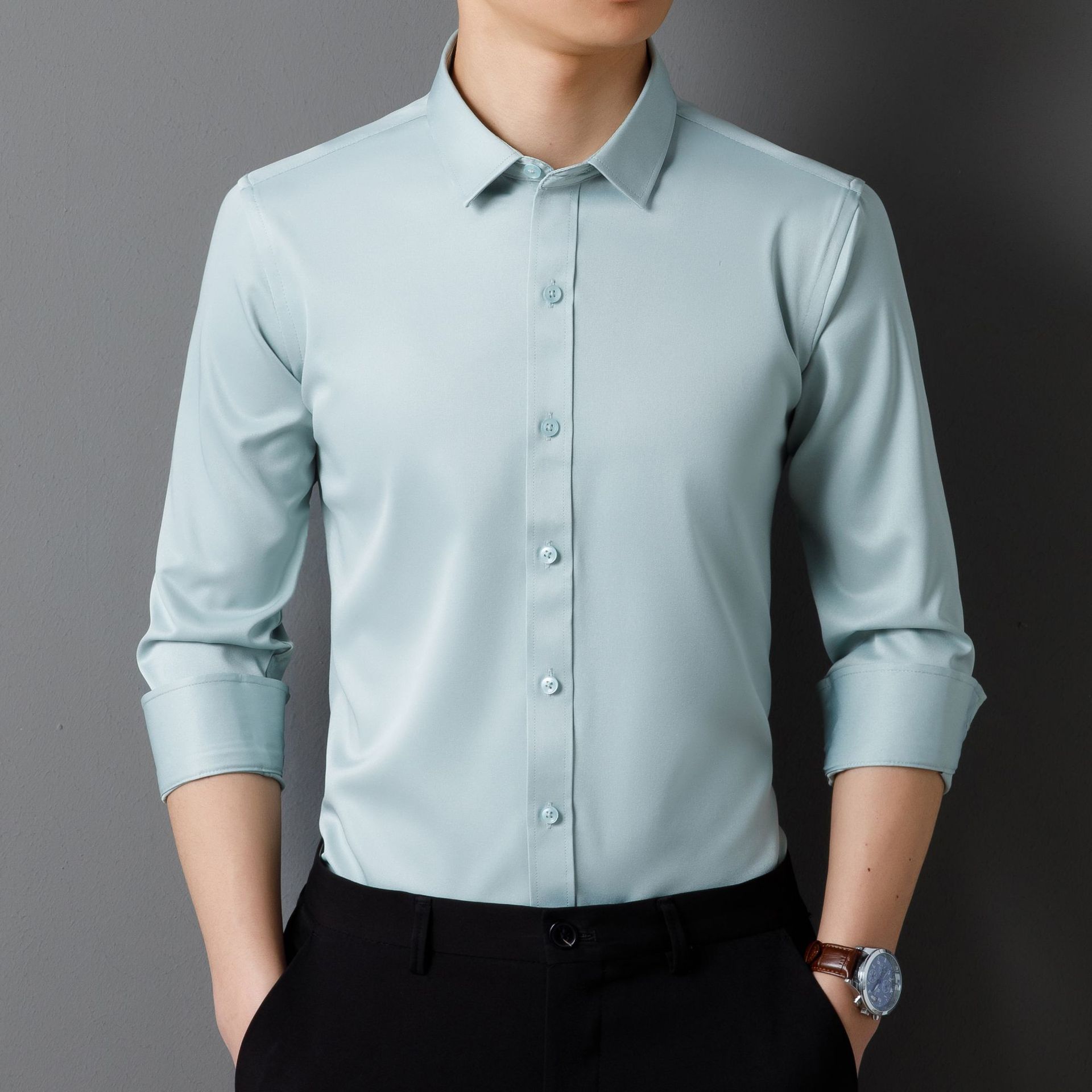 봄과 가을 신상 남성 긴팔 셔츠 단색 사방 스트레치 작업복 중년 및 청년 도시 스타일 스트레치 셔츠스토어 가기