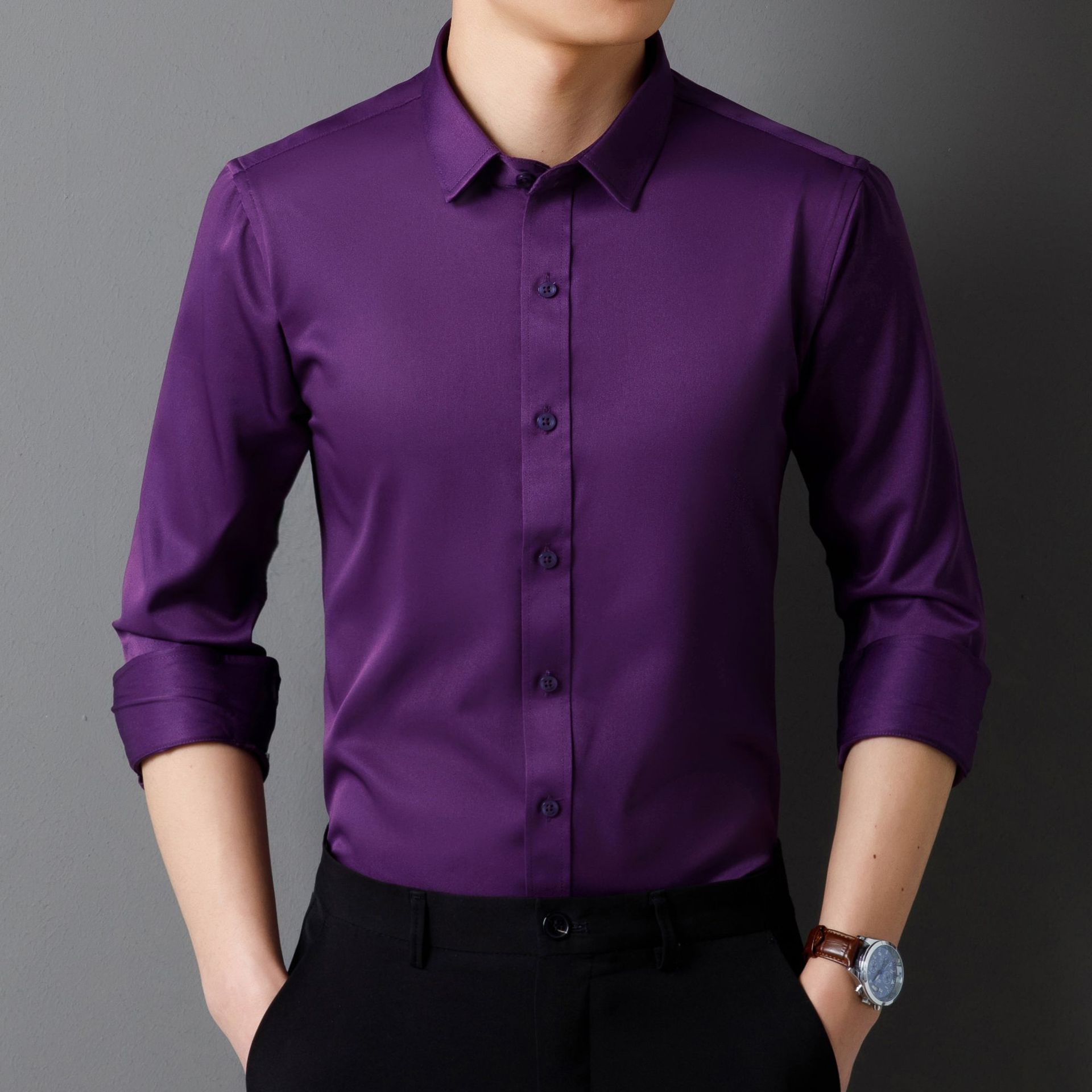봄과 가을 신상 남성 긴팔 셔츠 단색 사방 스트레치 작업복 중년 및 청년 도시 스타일 스트레치 셔츠