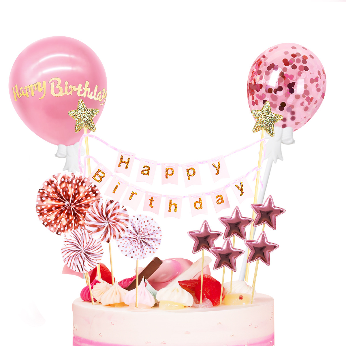 새로운 검은 색 테마 케이크 카드 세트 크리 에이 티브 핫 스탬핑 풍선 별 해바라기 깃발