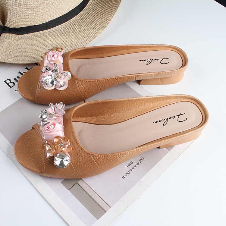 새로운 하프 슬리퍼 여성용 여름 홈 패션 다이아몬드 나비 꽃 겉옷 플랫 캐주얼 슬리퍼 편안한 여성 샌들