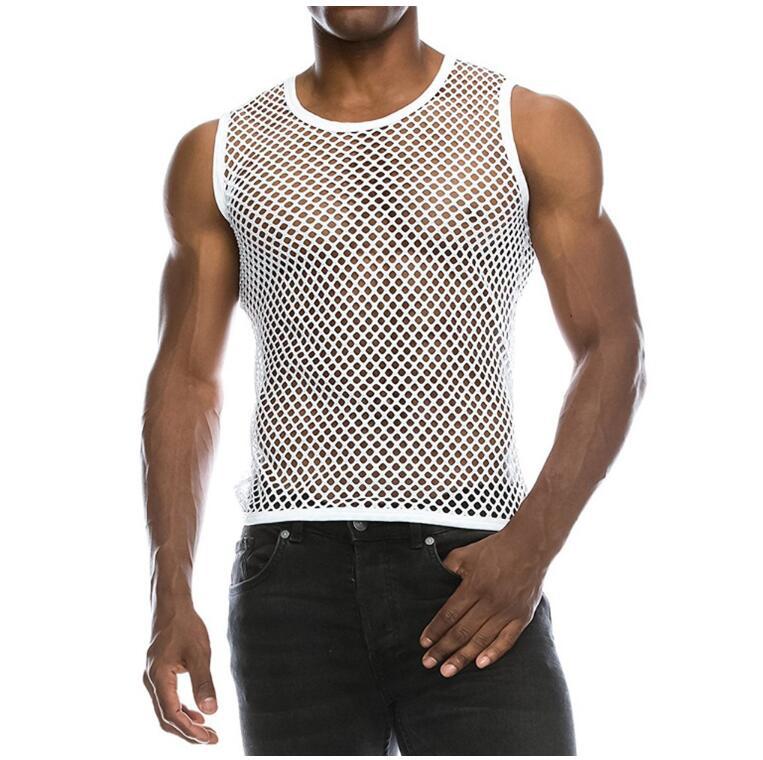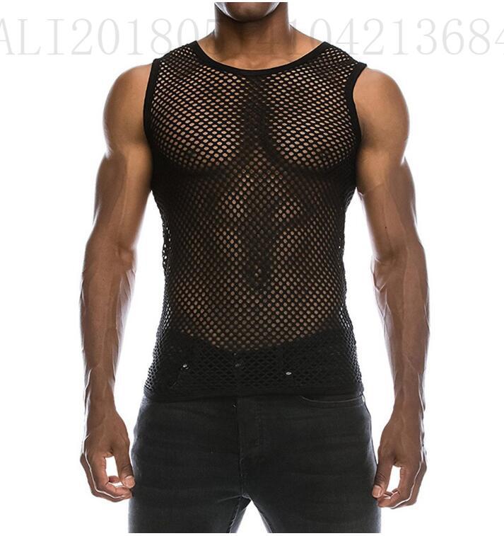 유럽과 미국의 국경 아마존 남성용 섹시한 메쉬 탑 짧은 소매 (긴 소매) (민소매)