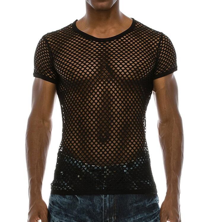 유럽과 미국의 국경 아마존 남성용 섹시한 메쉬 탑 짧은 소매 (긴 소매) (민소매)스토어 가기