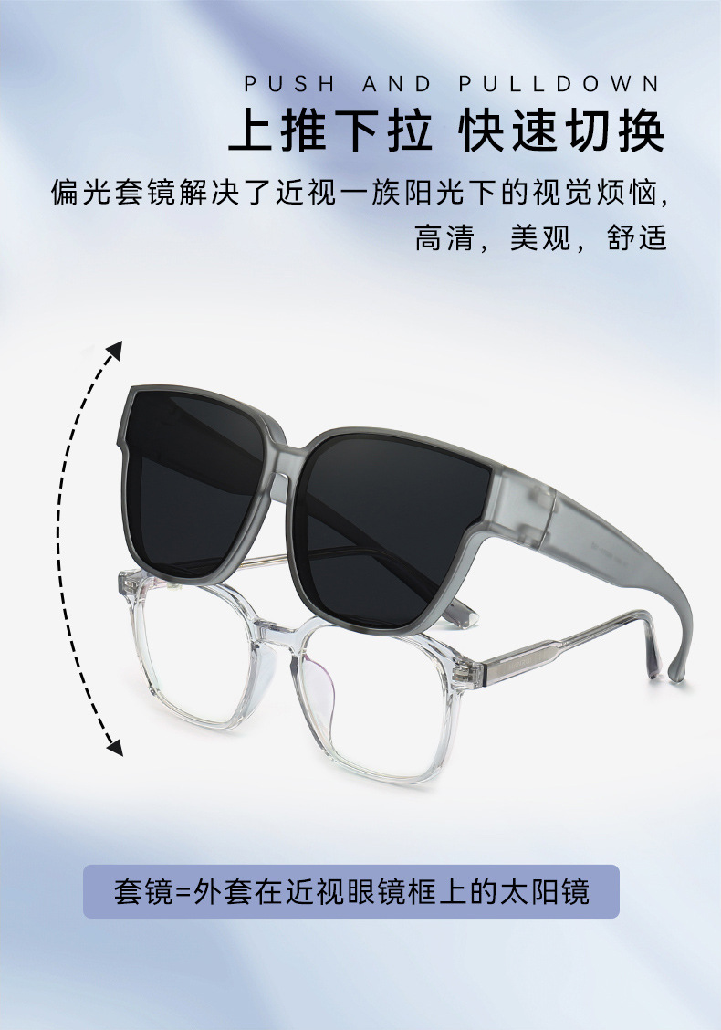TR90 안경 세트, 휴대용 한 렌즈 이중 목적 선글라스, 트렌디한 새로운 야외 운전 근시 안경, 편광 선글라스