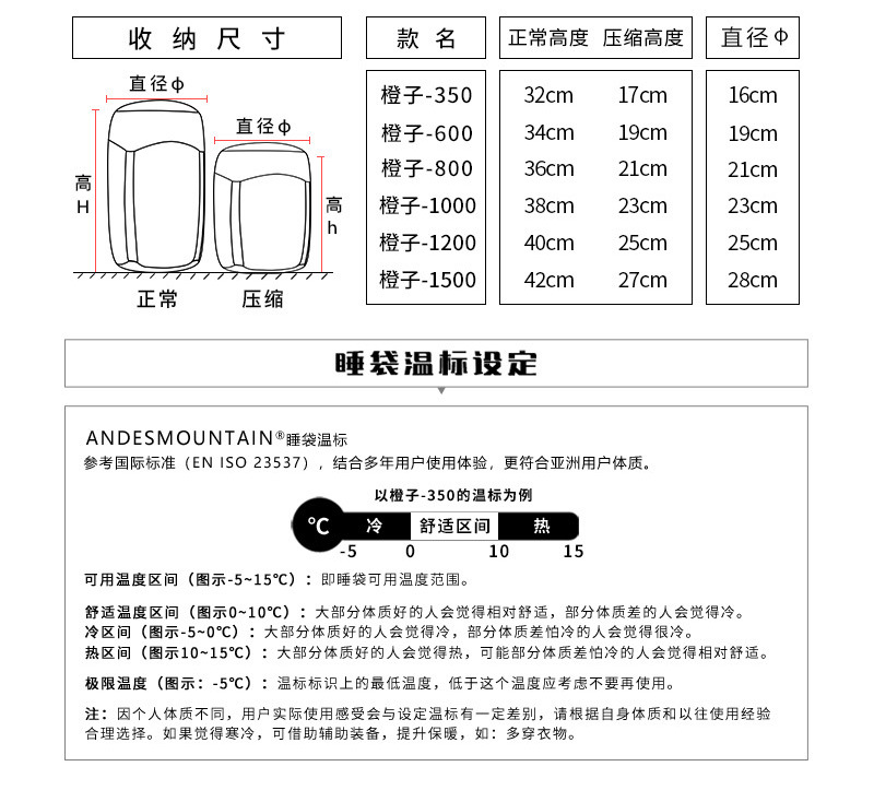 안데스마운틴 오렌지 미라마이드 덕다운 침낭 야외 여행 캠핑 사막 하이킹 침낭스토어 가기