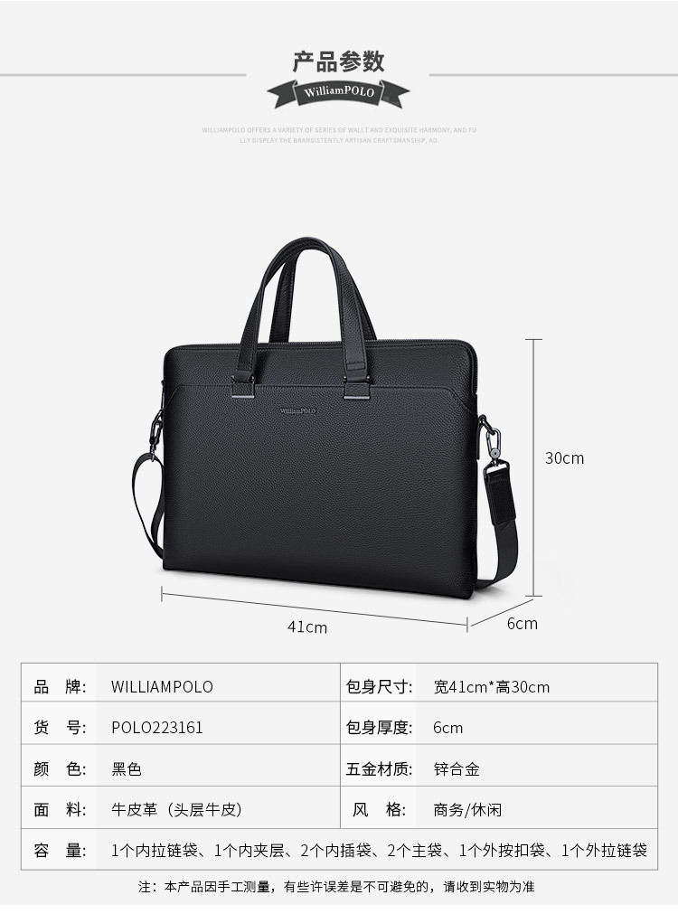 폴로 가죽 남성용 가방 비즈니스 대용량 남성용 서류가방 방수 소가죽 캐주얼 폴로 노트북 가방스토어 가기