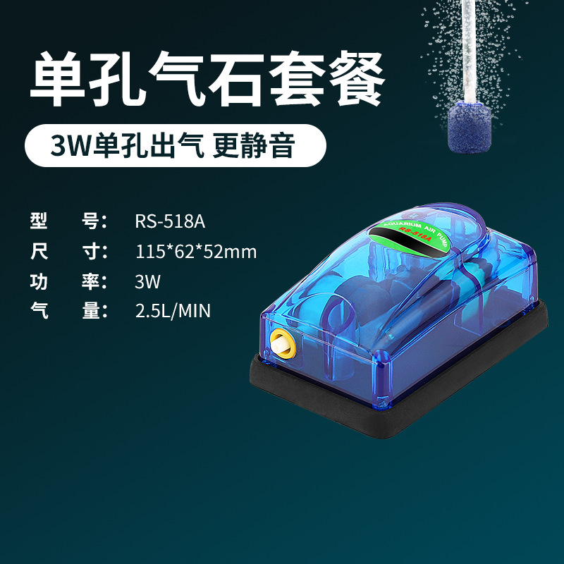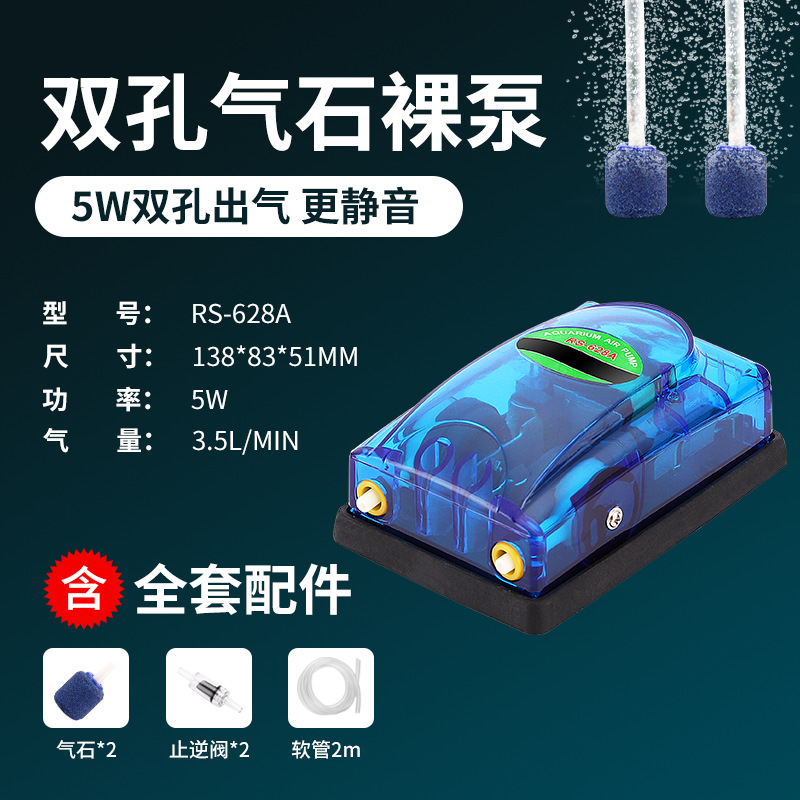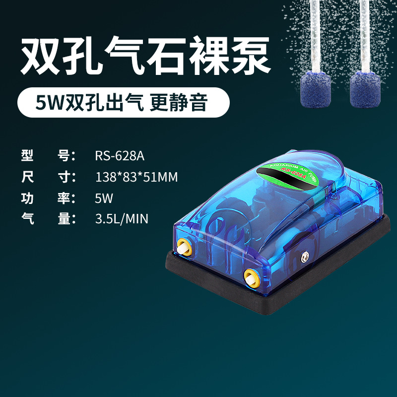 跨境鱼缸小型增氧泵日胜RS518A/628A氧气泵水族箱透明打氧泵
