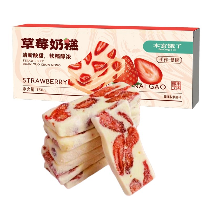 원산지 공장 망고 건조밀크케이크 딸기의 사랑 아몬드 누가밀크푸드 인기 간식 도매 OEM스토어 가기