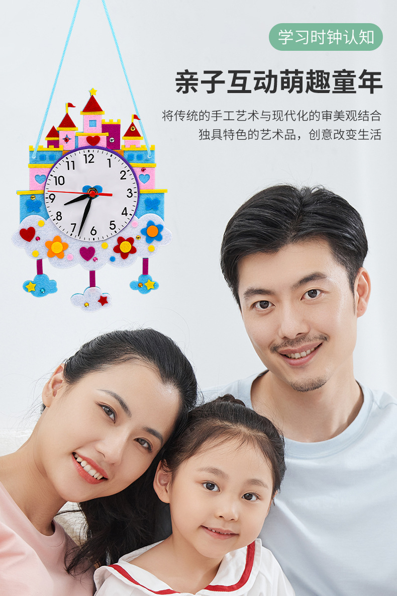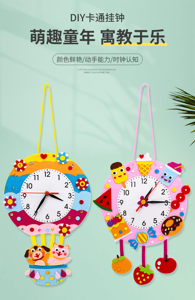 부직포 만화 시계 어린이 DIY 수제 시계 장난감 재료 유치원 인식 시간 교재스토어 가기