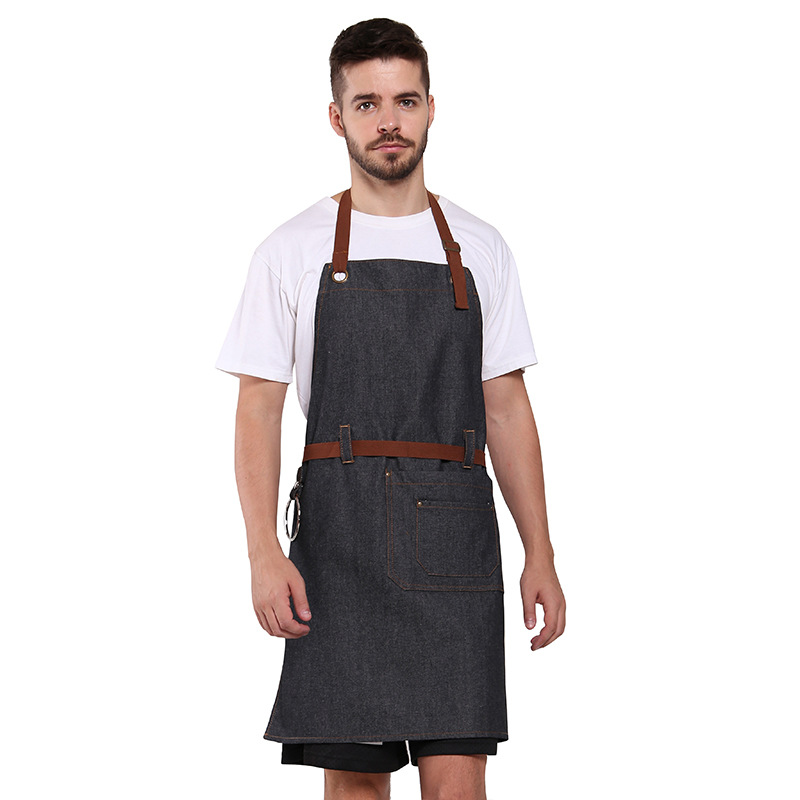 아마존 데님 앞치마 크로스 보더 전신 커피 숍 서양 레스토랑 인쇄 가능 로고 유니폼 앞치마 바지