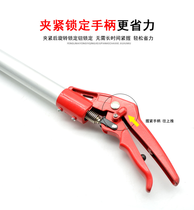 升级款月牙款:刀头加长,夹持刃口长,使用范围更广,摘果轻松,不易掉落,升级铝合金杆身,坚固耐用,加厚铝合金手柄,握感更舒适。