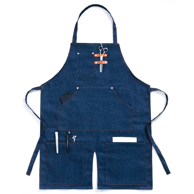 데님 앞치마 작업복 야외 원예 레스토랑 바리 스타 우유 차 가게 매니큐어 미용 남성과 여성 툴링 인쇄 로고