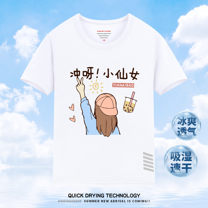 여자 티셔츠 반팔 여름 2025 새로운 중대형 아동복 속건 의류 아동 스타일 느슨한 여자상의스토어 가기
