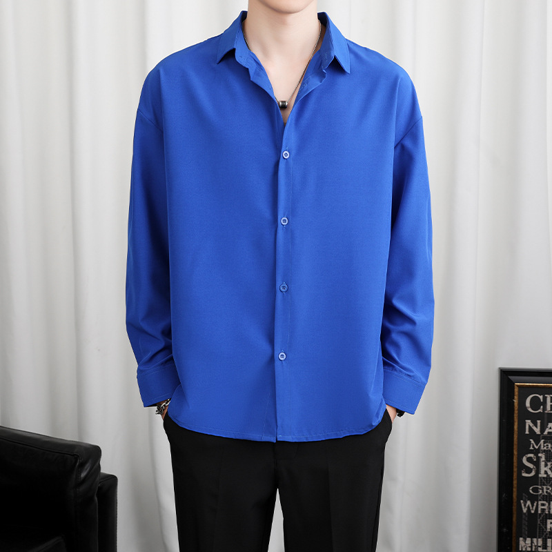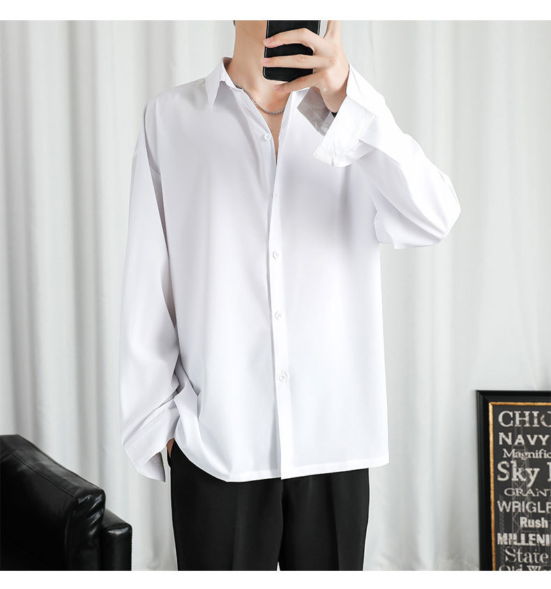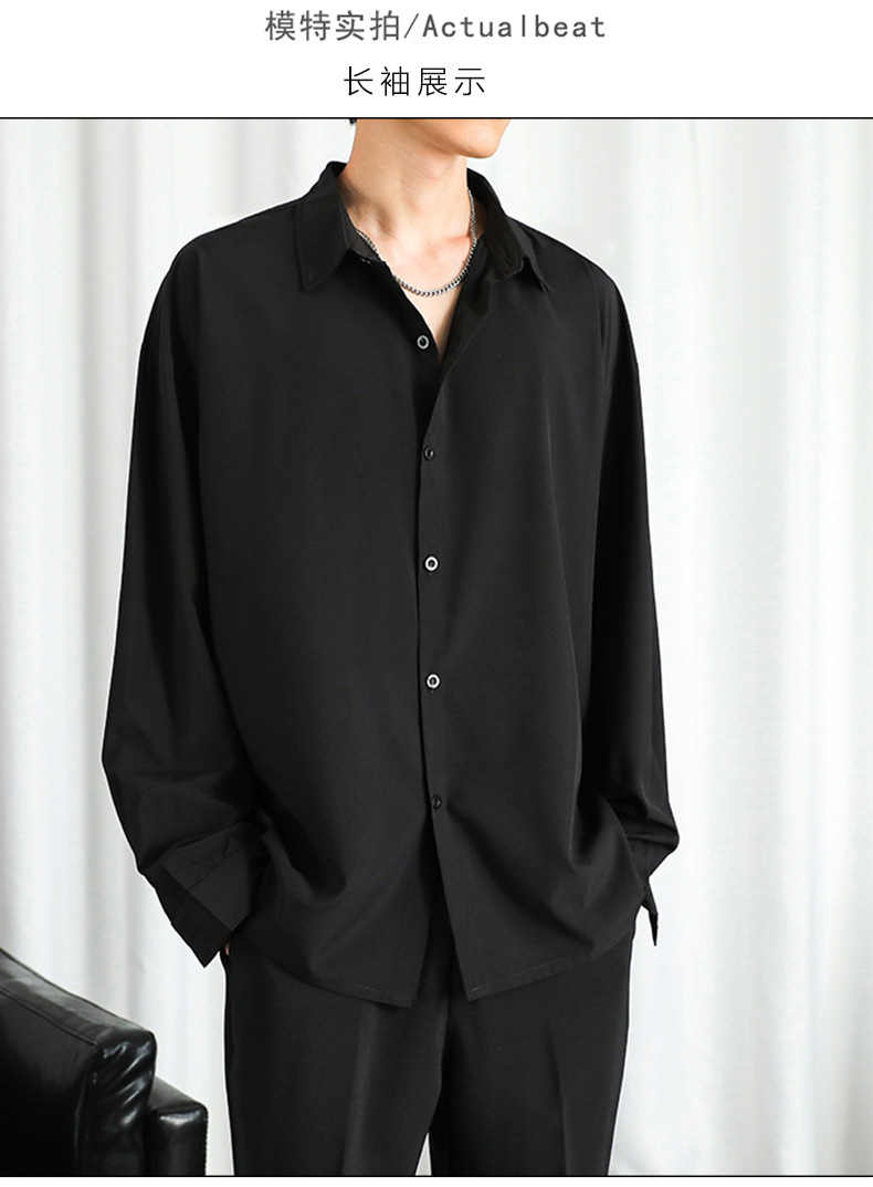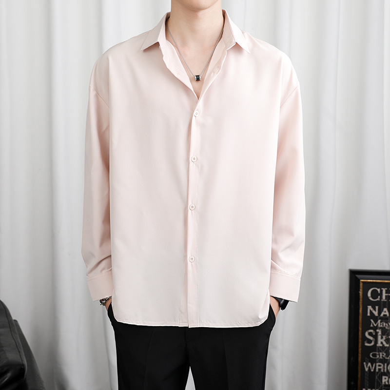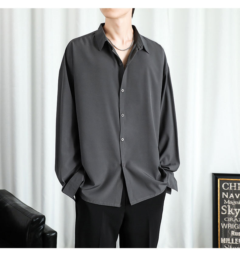 LKTM 남자 # 봄과 여름 얇은 얼음 실크 긴 소매 셔츠 남성용 고급 Yuppie 핸섬 느슨한 쓰레기 셔츠