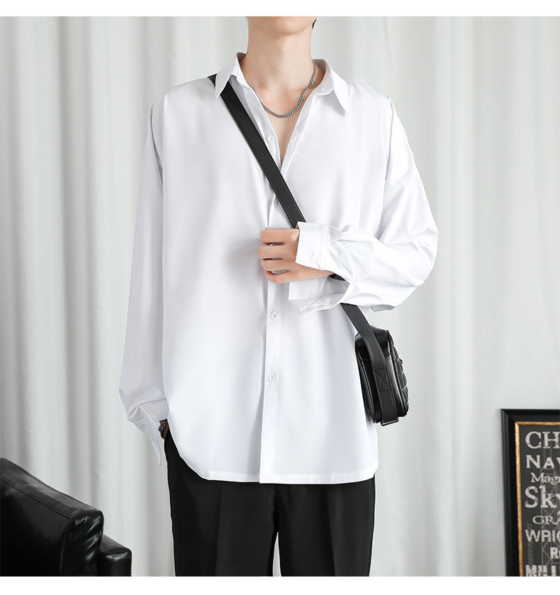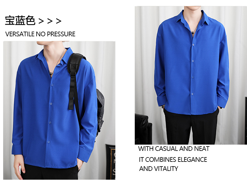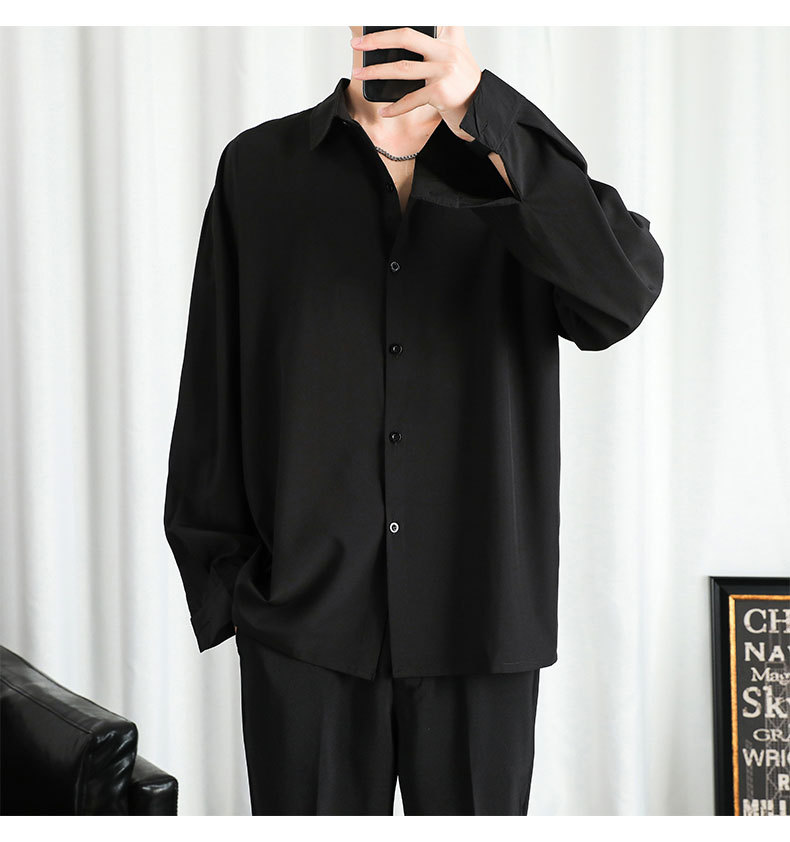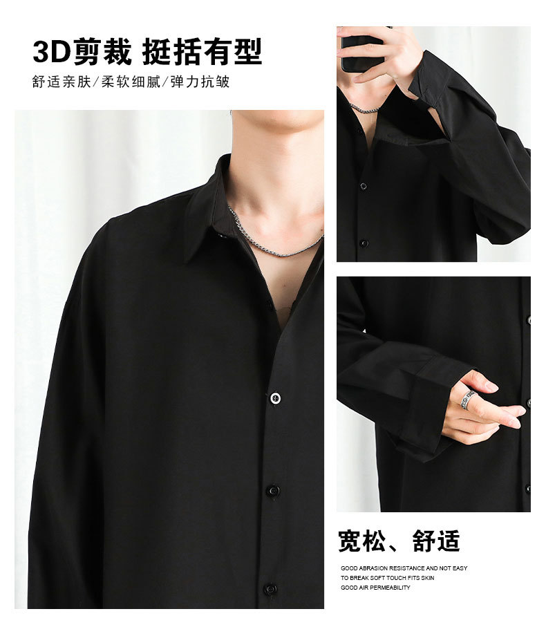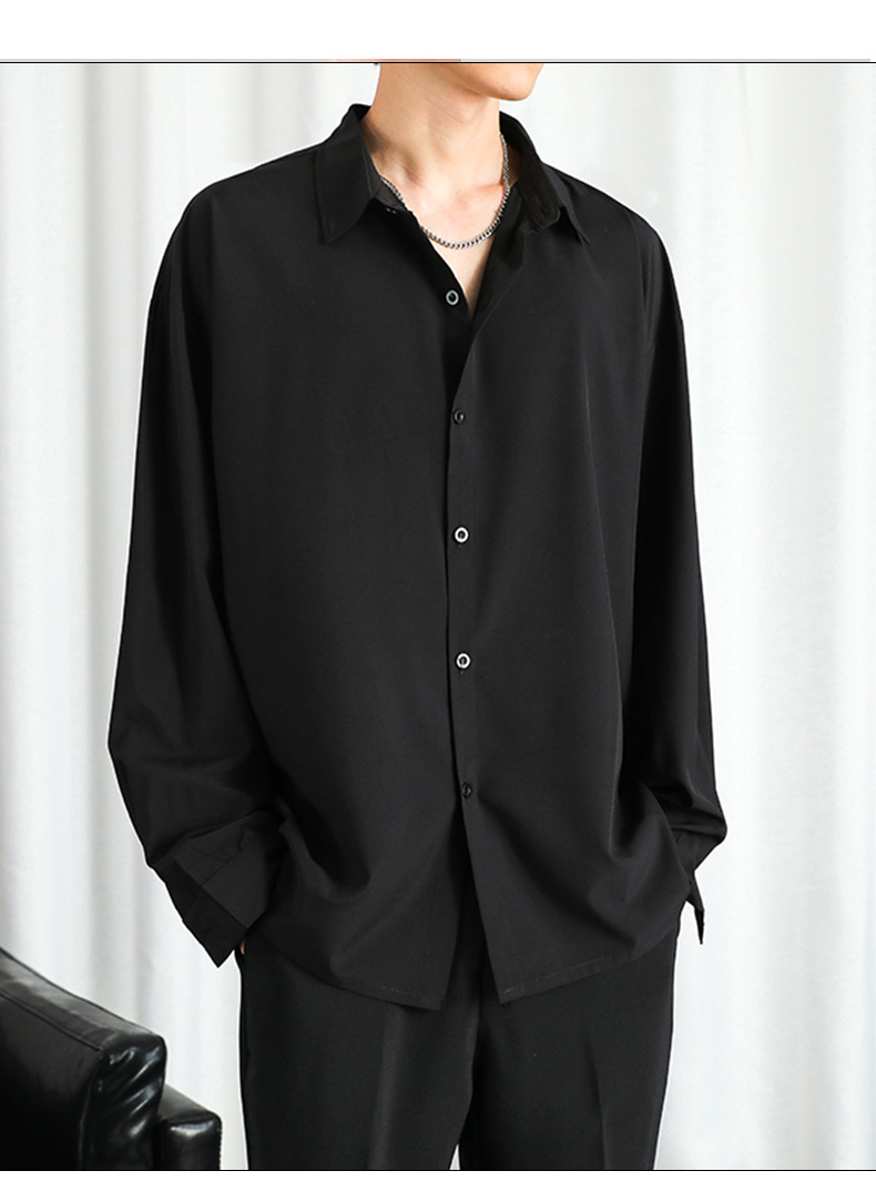 LKTM 남자 # 봄과 여름 얇은 얼음 실크 긴 소매 셔츠 남성용 고급 Yuppie 핸섬 느슨한 쓰레기 셔츠