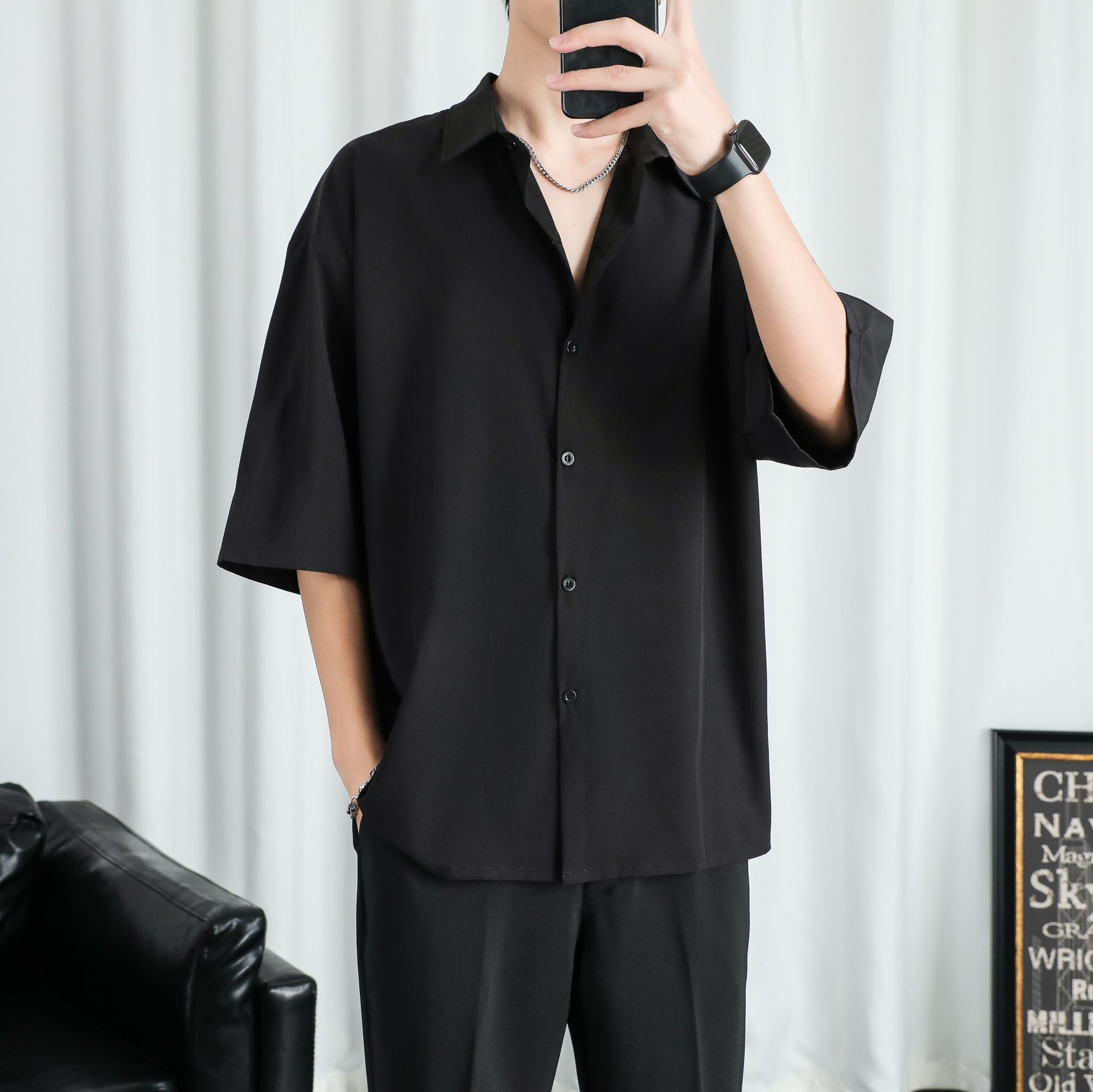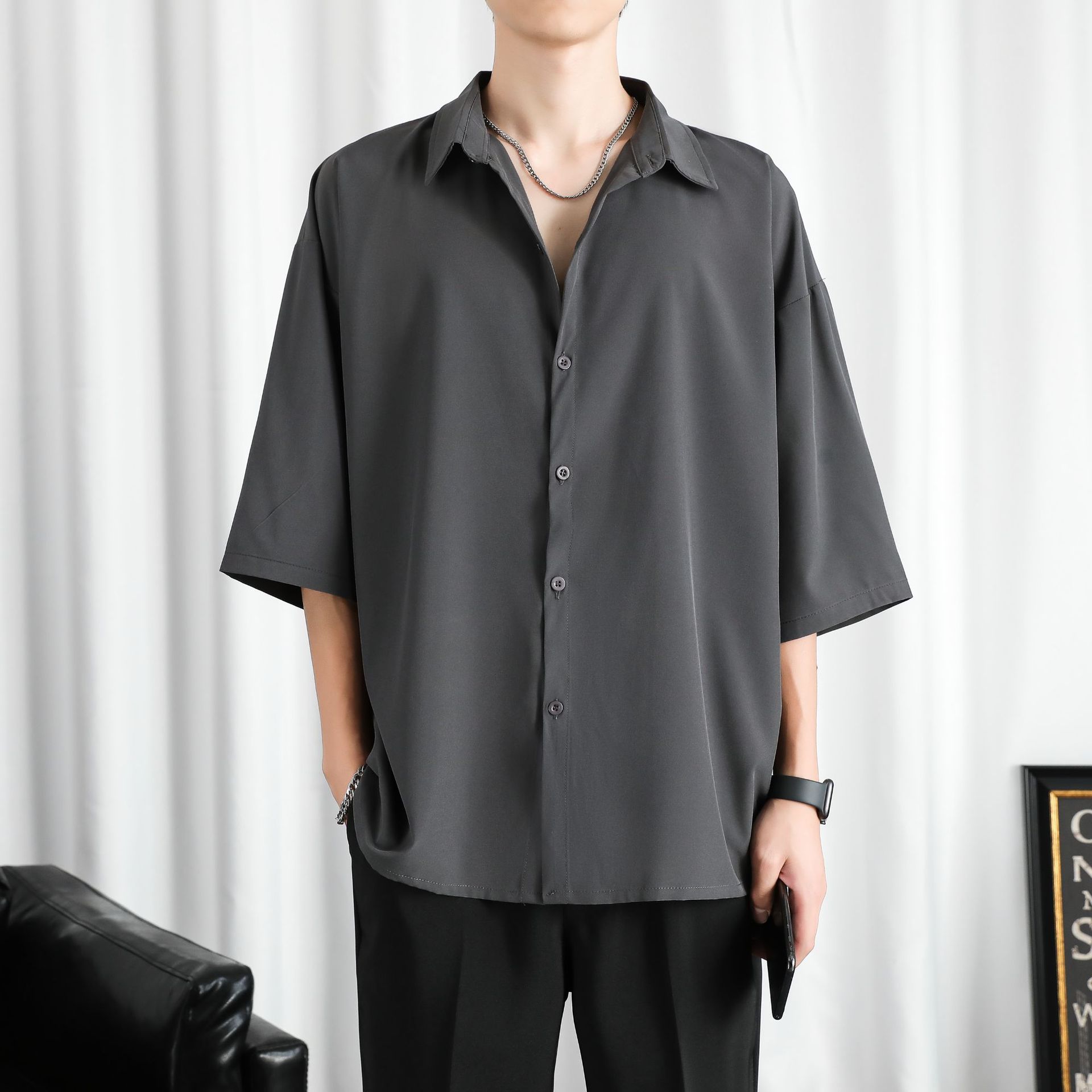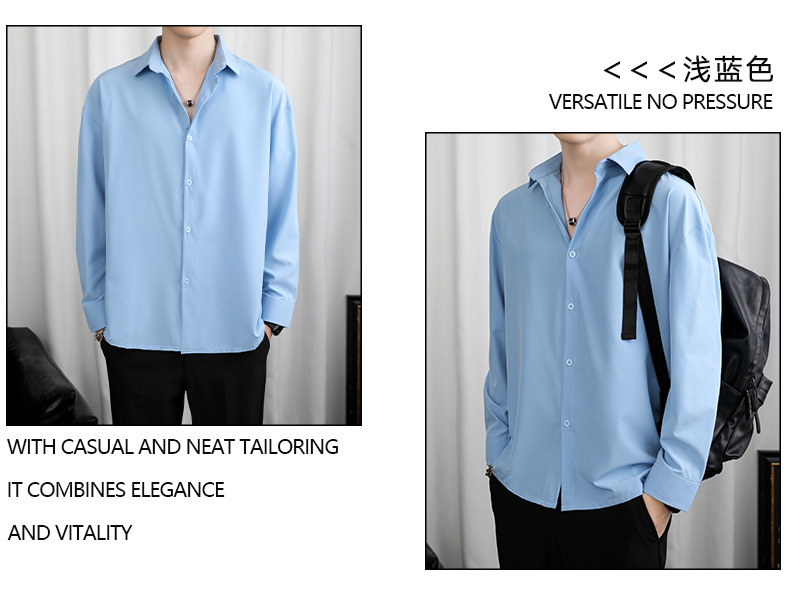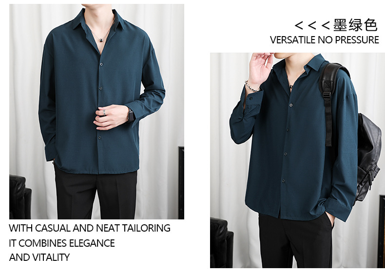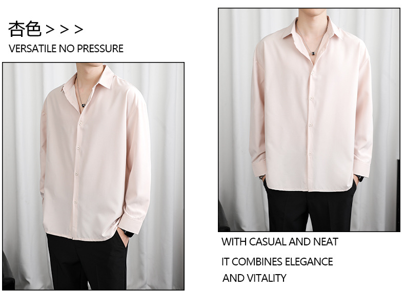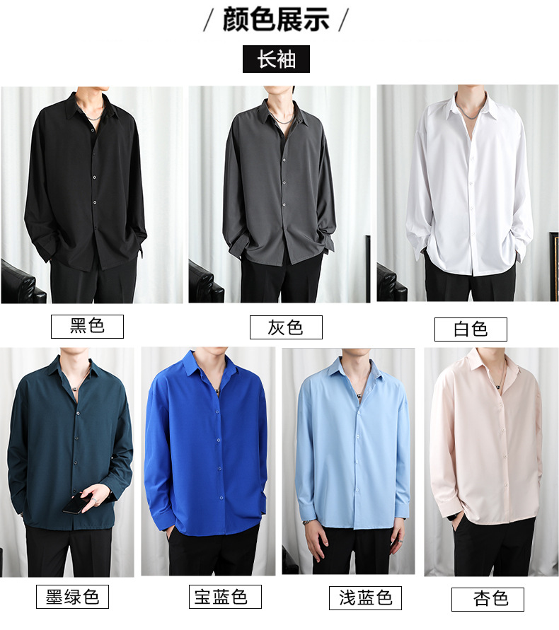 LKTM 남자 # 봄과 여름 얇은 얼음 실크 긴 소매 셔츠 남성용 고급 Yuppie 핸섬 느슨한 쓰레기 셔츠스토어 가기