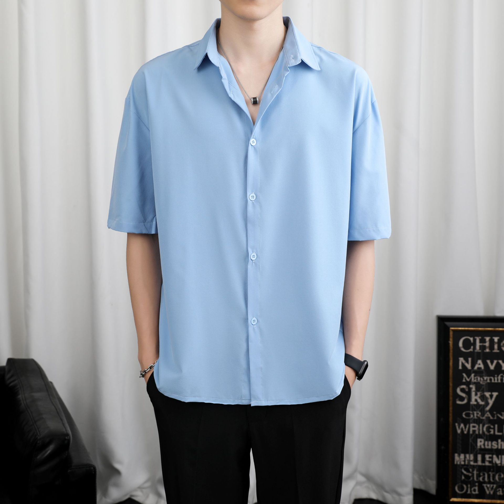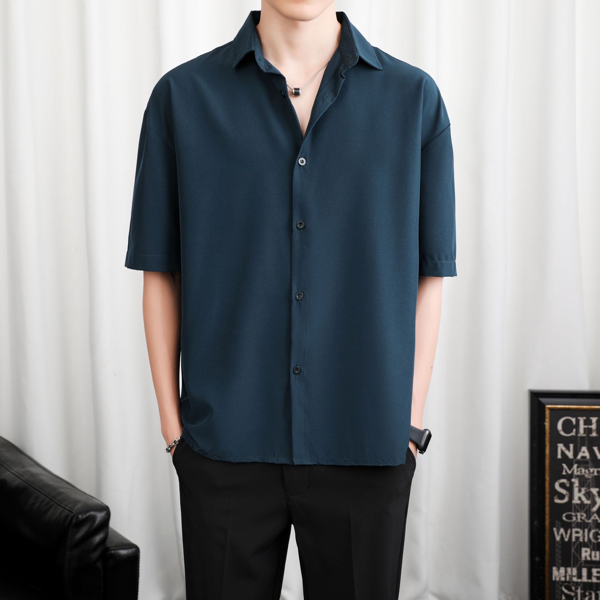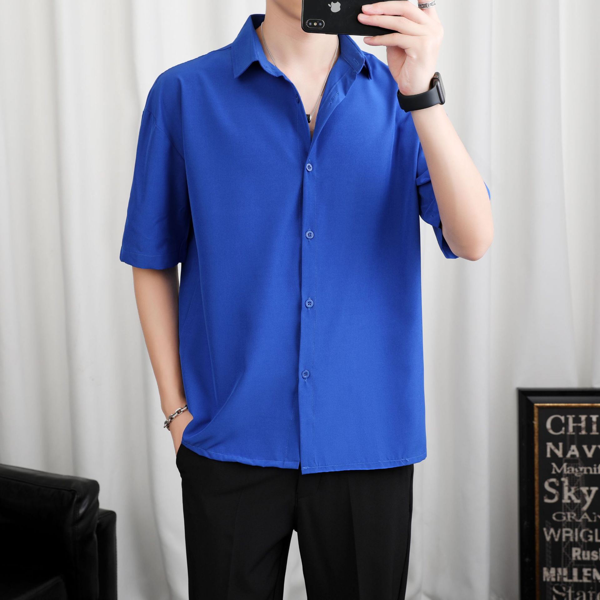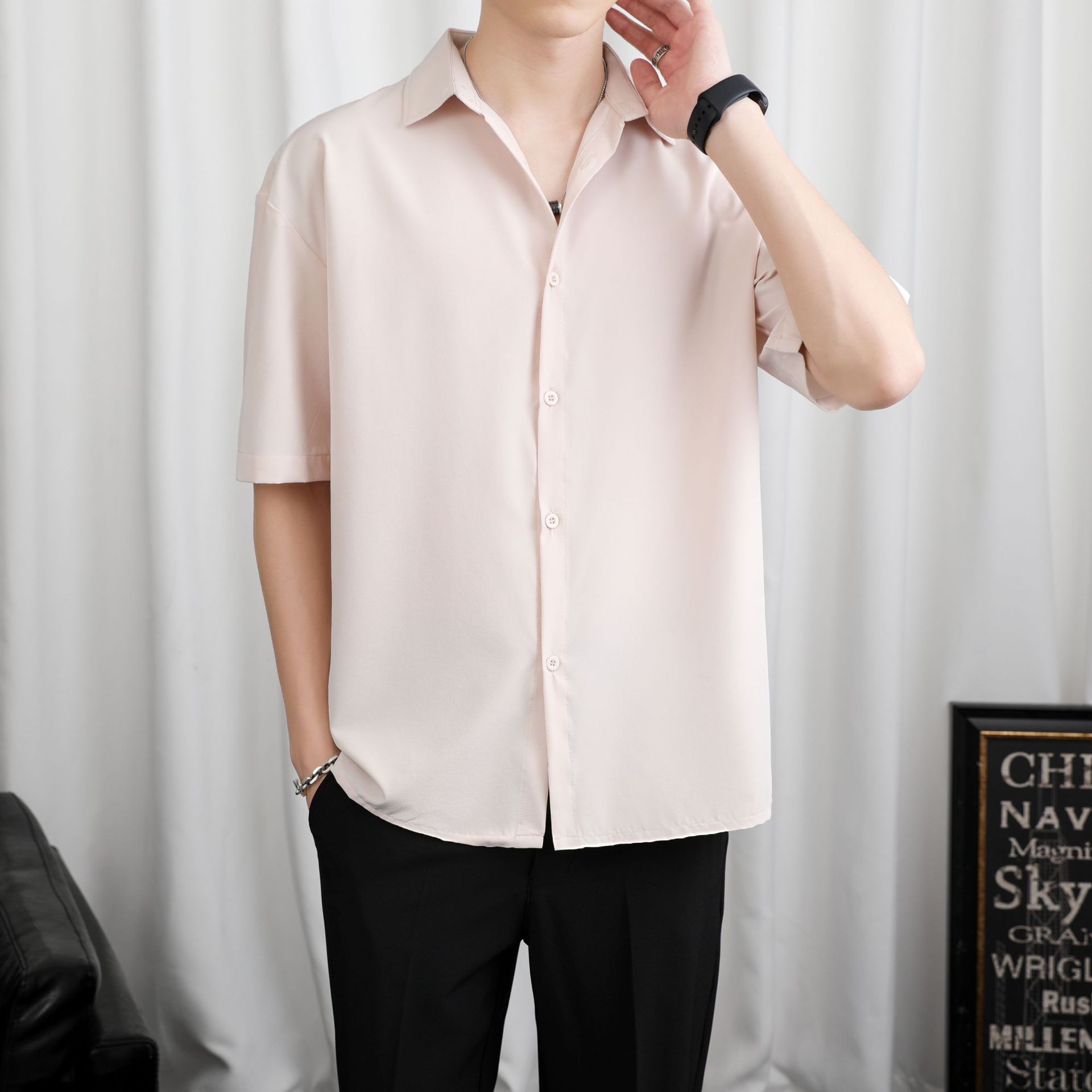 LKTM 남자 # 봄과 여름 얇은 얼음 실크 긴 소매 셔츠 남성용 고급 Yuppie 핸섬 느슨한 쓰레기 셔츠스토어 가기