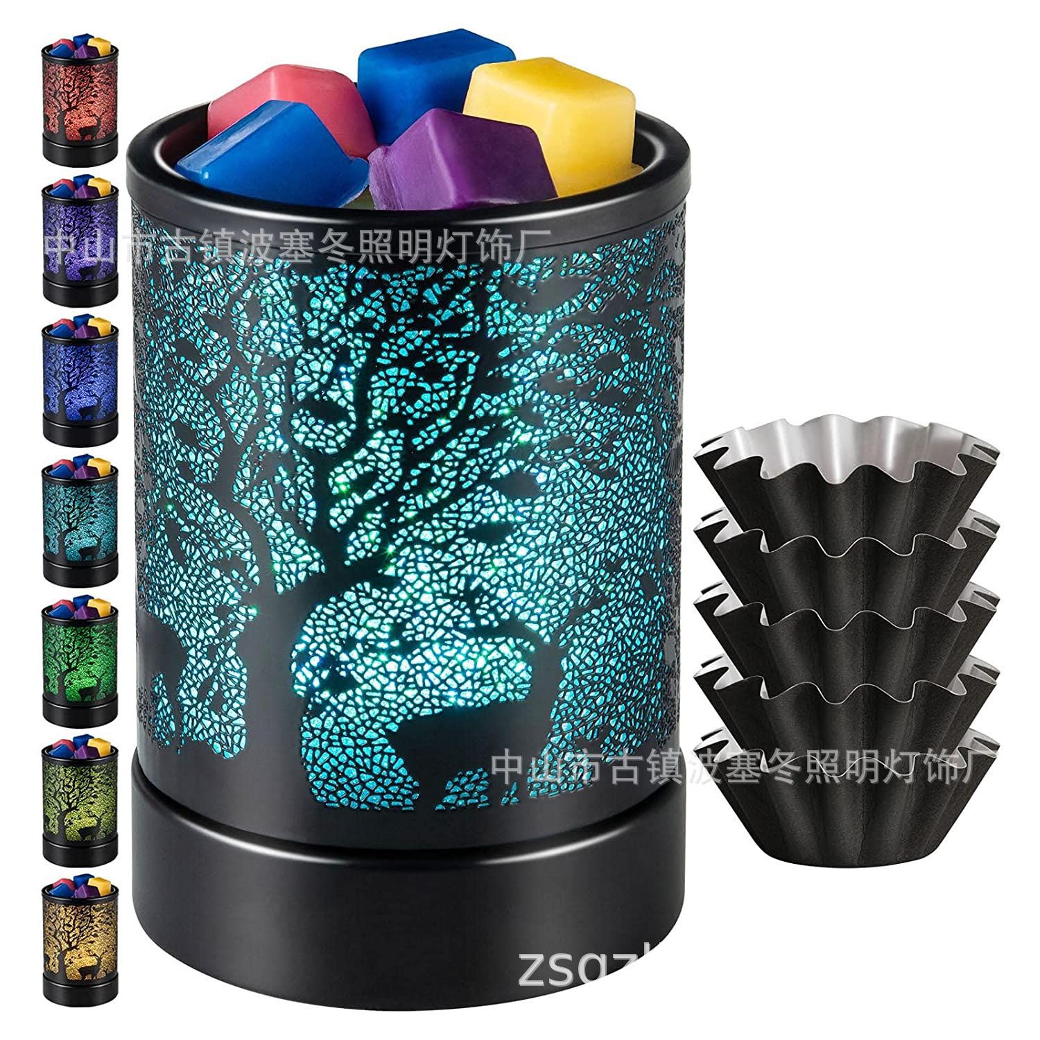 국경 간 미국 연철 사슴 화재없는 에센셜 오일 플러그인 왁스 램프 LED 다채로운 아로마 테라피 램프 홈 장식 야간 조명