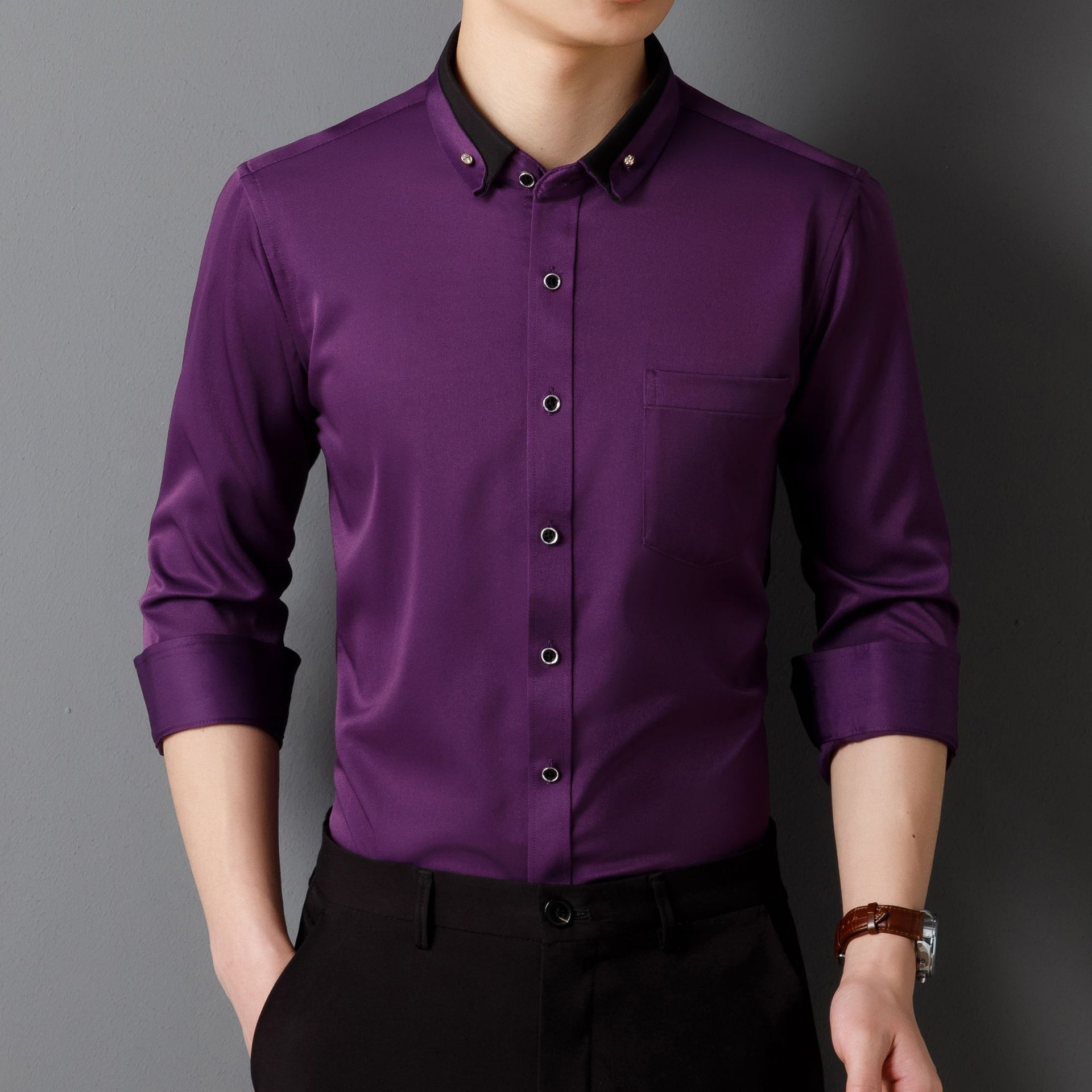 비즈니스 셔츠 긴팔 남성 셔츠 다림질 필요 없는 사방 스트레치 다이아몬드 버튼 셔츠 남성 긴팔 셔츠스토어 가기