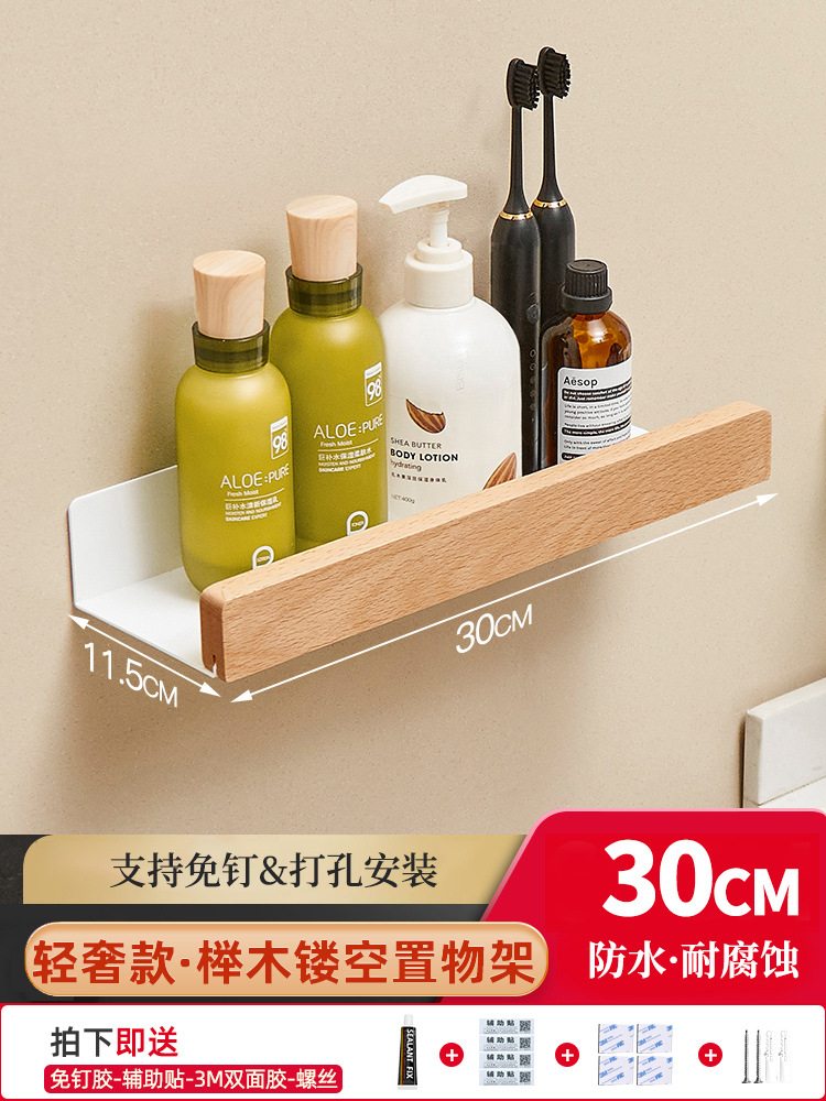 화장실 및 화장실 세면대용 펀치 프리 벽걸이 드레싱 랙 화장품 수납 랙 단단한 나무 욕실 수납 랙