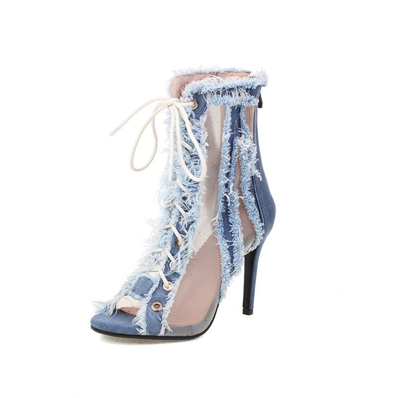 33-43 외국 무역 봄과 여름 중공 두꺼운 뒤꿈치 방수 플랫폼 메쉬 데님 얇은 뒤꿈치 유럽과 미국 여성 샌들 G99