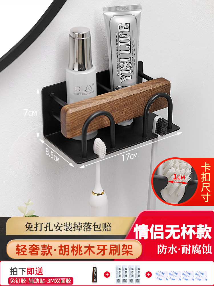 단단한 나무 칫솔 보관 랙 비 드릴링 구강 세척제 컵 브러쉬 화이트 화장실 벽걸이 형 선반 전기 홈 세트
