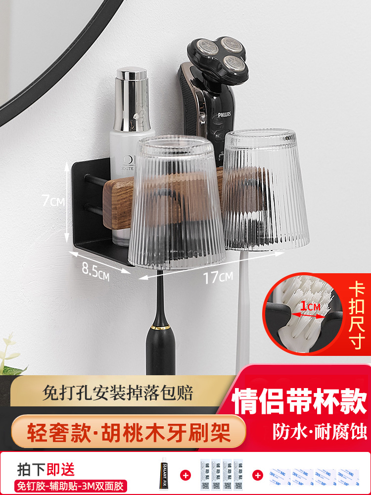 • 호두 칫솔 홀더 G-블랙 2 컵 포함