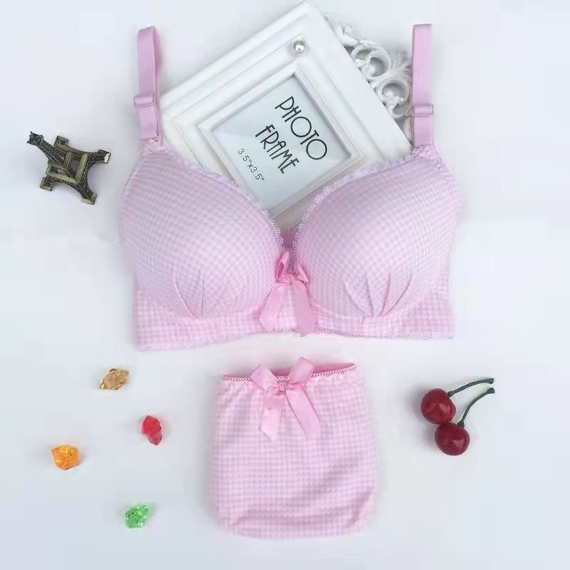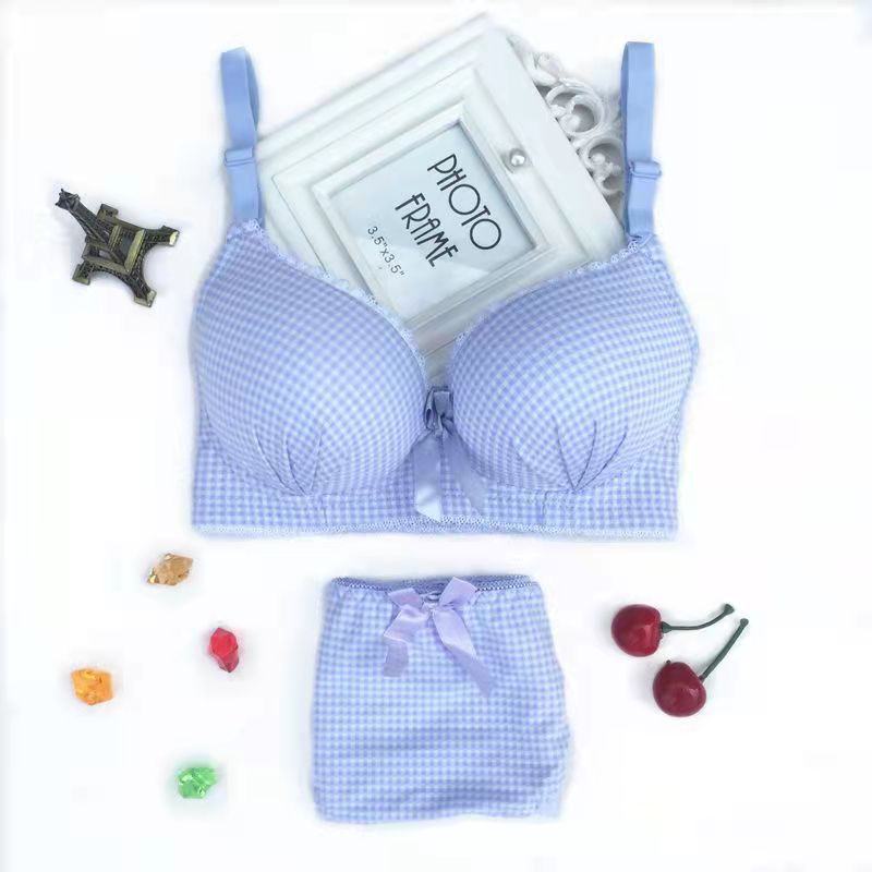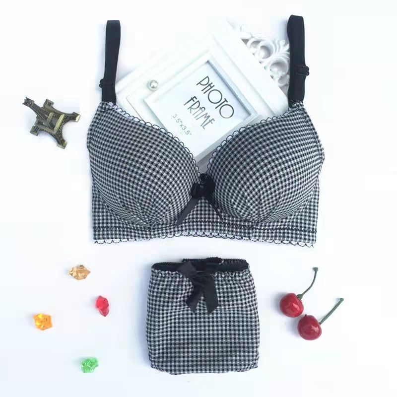 고등학생 및 대학생을위한 여아 속옷 무테 수집 작은 브래지어 처짐 방지 얇은 레이스 격자 무늬 브래지어 세트