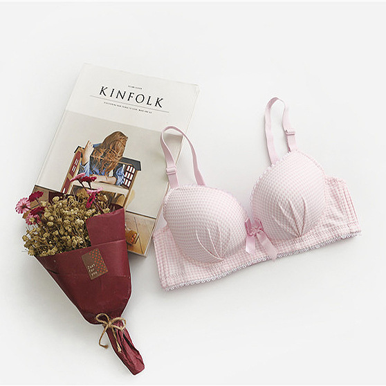 고등학생 및 대학생을위한 여아 속옷 무테 수집 작은 브래지어 처짐 방지 얇은 레이스 격자 무늬 브래지어 세트스토어 가기