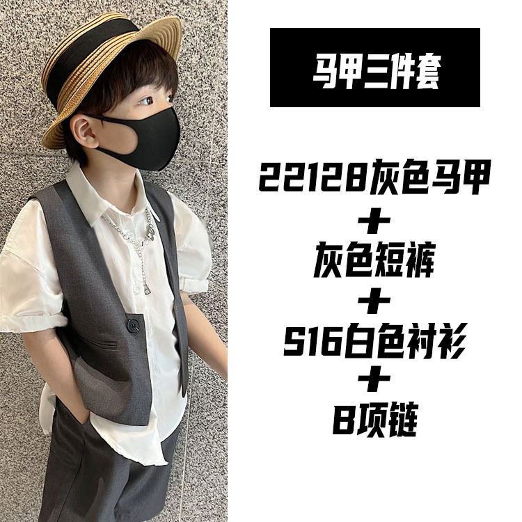 • 22128 회색 조끼 + 반바지 2 종 세트 + S16 흰색 셔츠 + B 목걸이