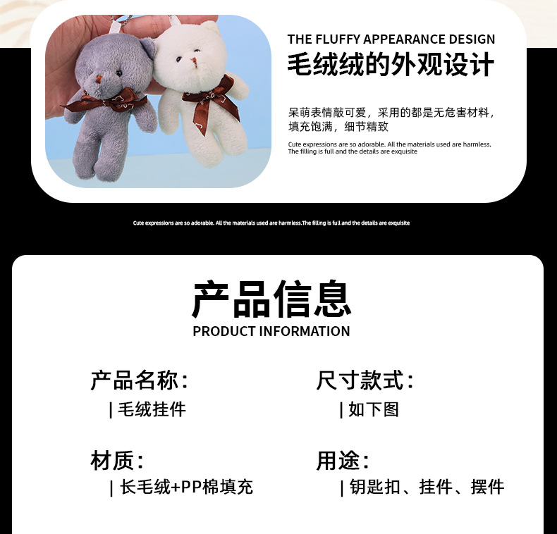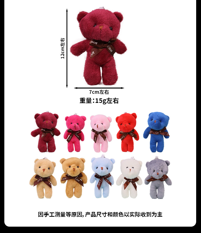 테디 원피스 곰 인형, 곰 펜던트, 플러시 장난감 열쇠고리, 어린이 인형, 선물, 도매 재고 있음