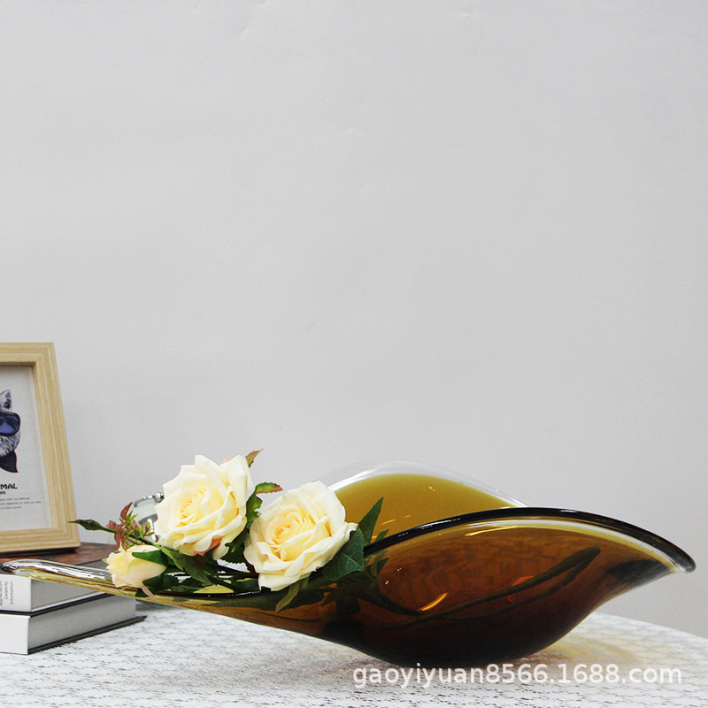 절묘한 색깔의 유리 접시 가정 전시 홀 식탁 과일 접시 현대 유리 꽃 유리 접시