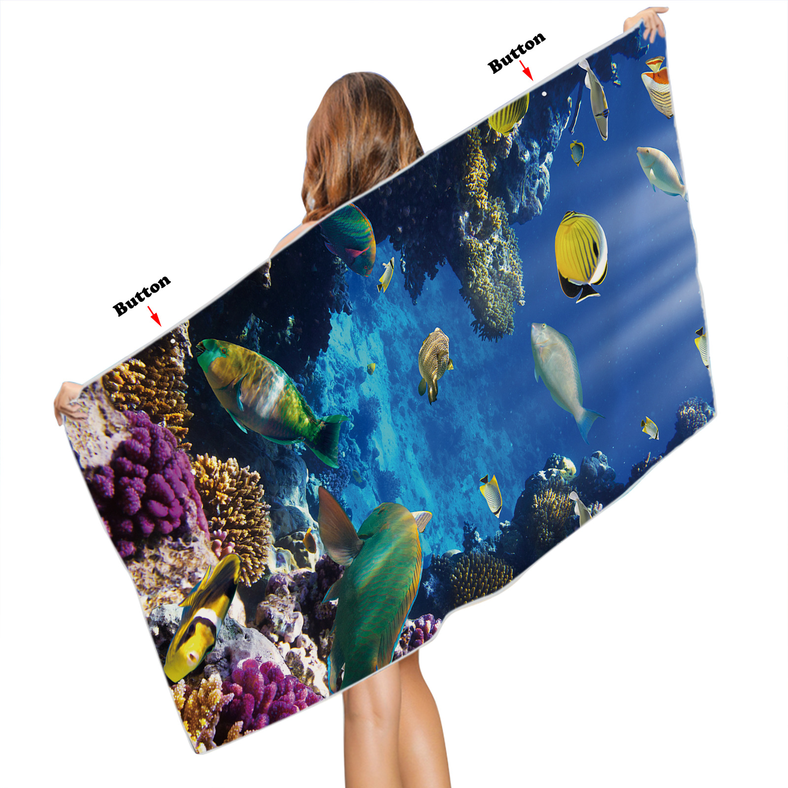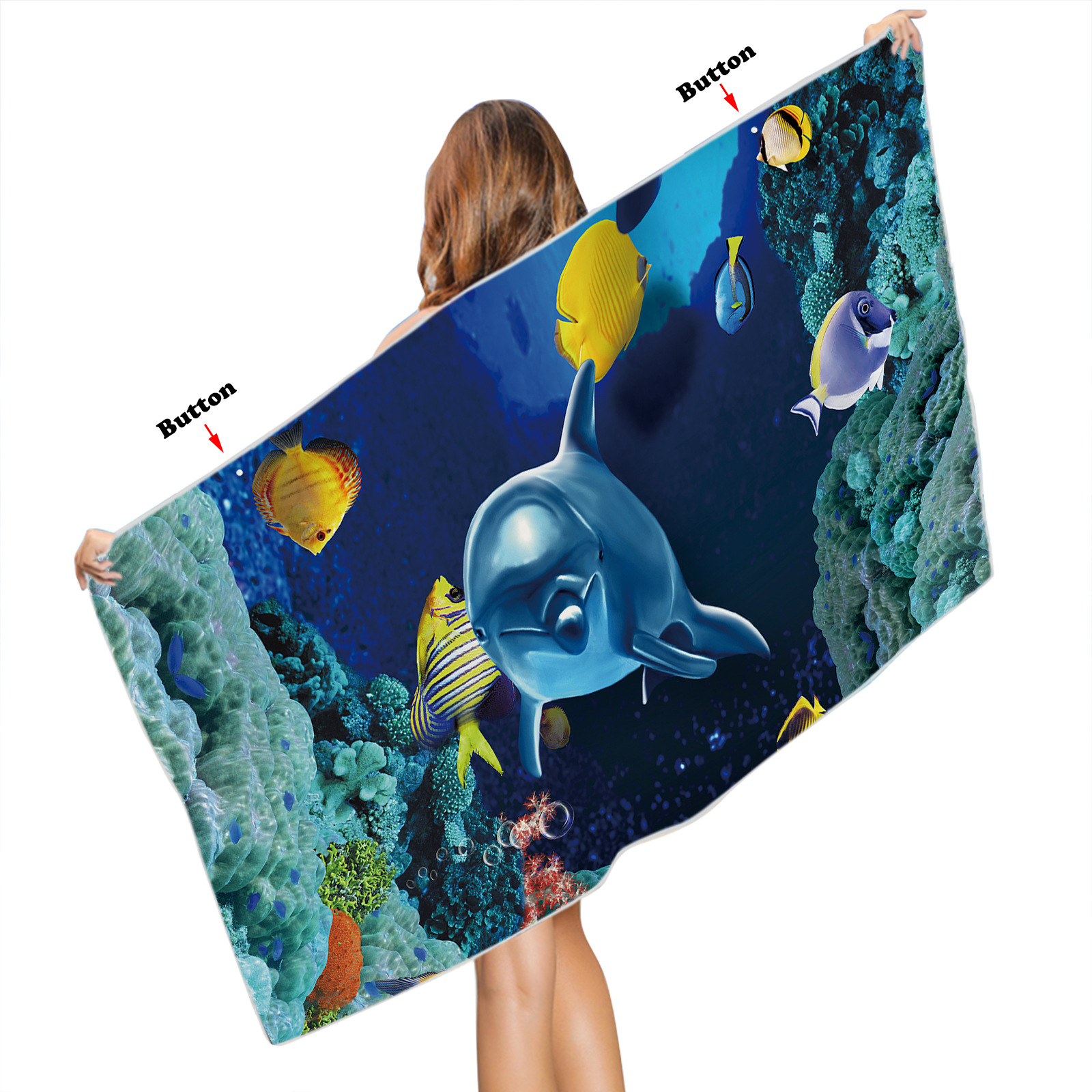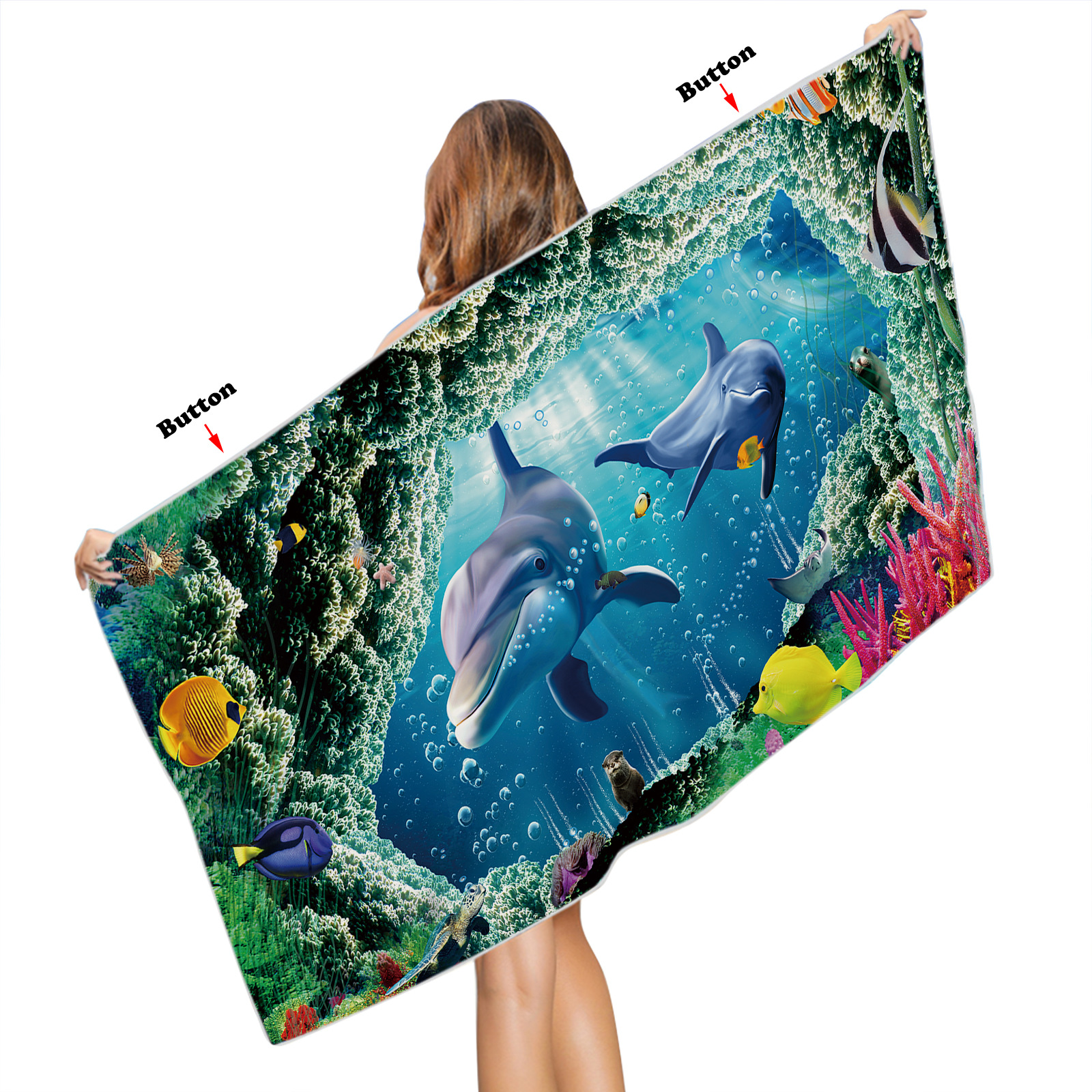단추가있는 수중 세계 새로운 타월 사각형 해변 원피스 국경 양면 벨벳 마이크로 화이버 목욕 타월