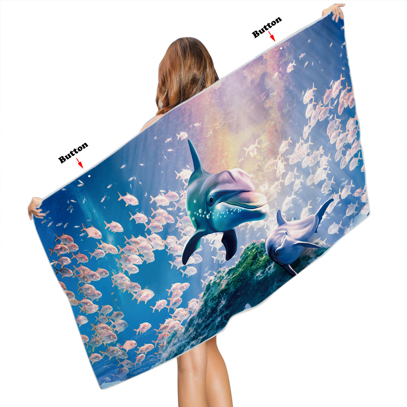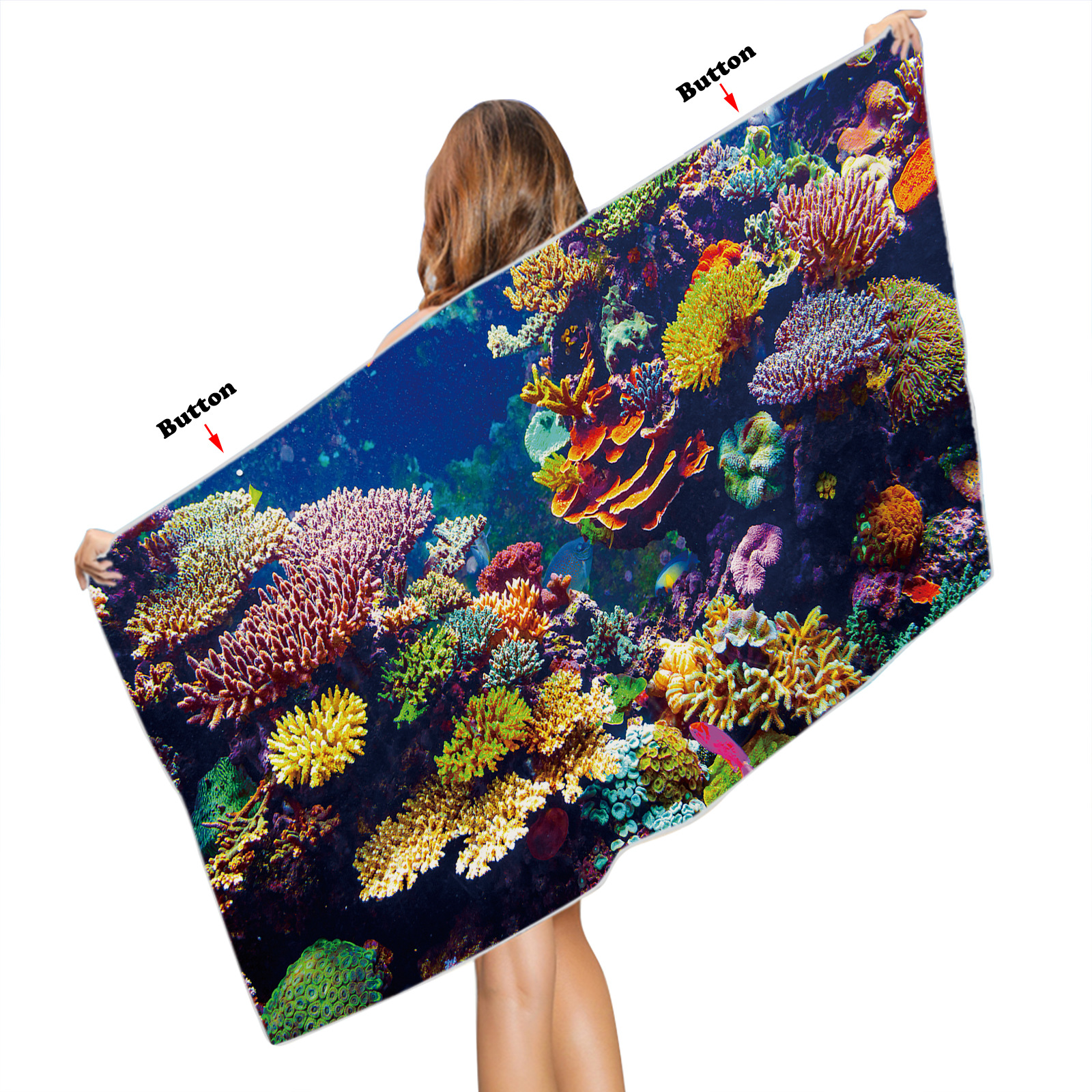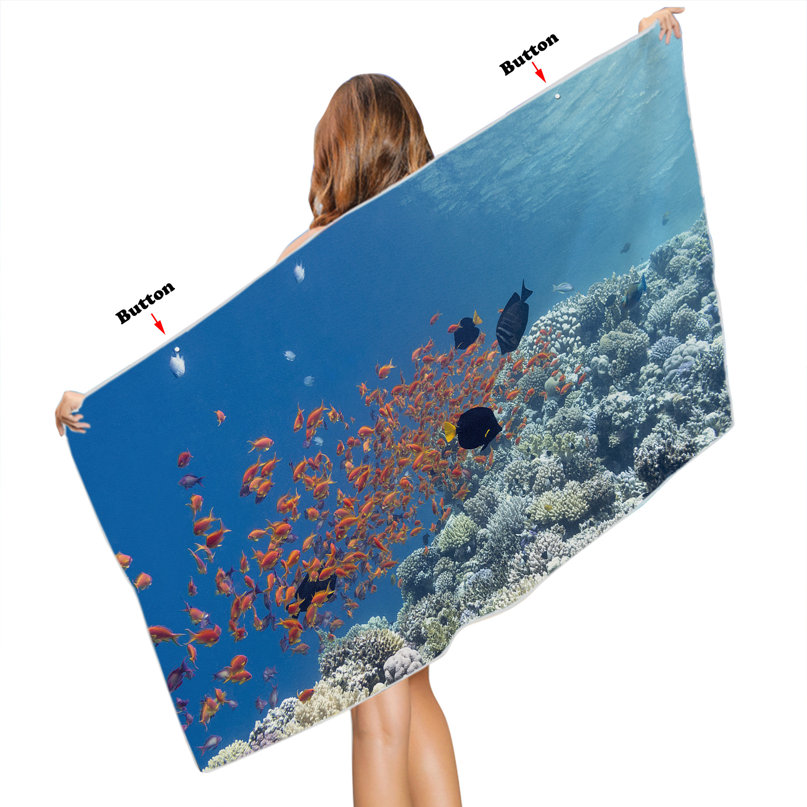 단추가있는 수중 세계 새로운 타월 사각형 해변 원피스 국경 양면 벨벳 마이크로 화이버 목욕 타월