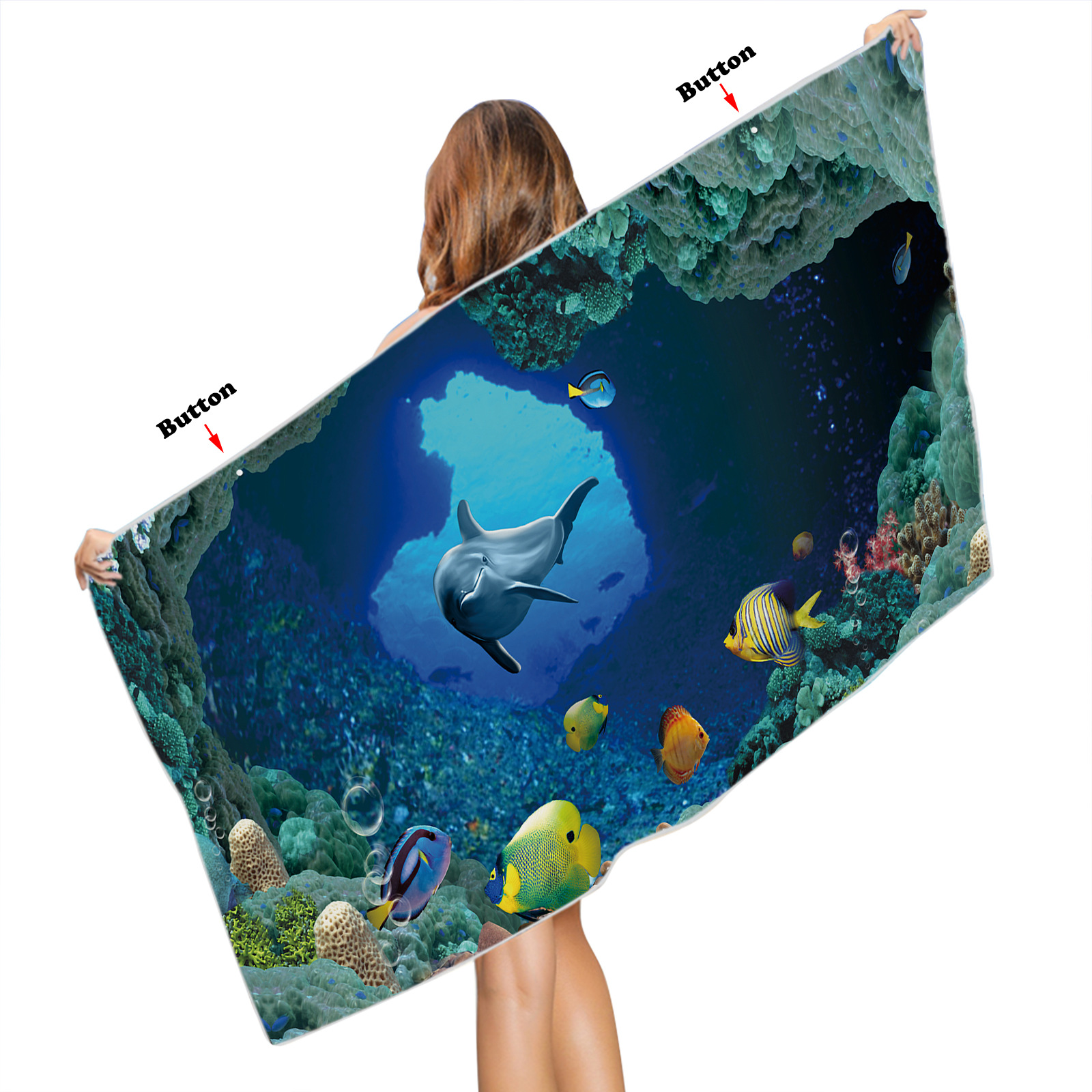 단추가있는 수중 세계 새로운 타월 사각형 해변 원피스 국경 양면 벨벳 마이크로 화이버 목욕 타월스토어 가기