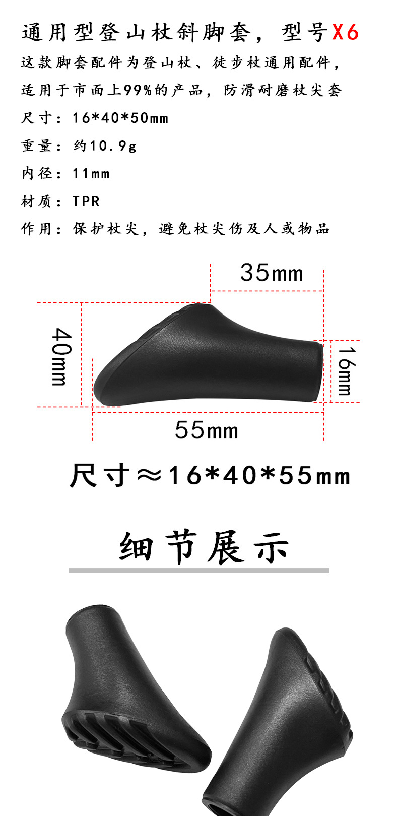 등산 스태프 액세서리 유니버설 스태프 팁 슬리브 베벨 슬리브 보호 슬리브 미끄럼 방지 내마모성 슬리브 TPR 소재 발 슬리브 X6스토어 가기