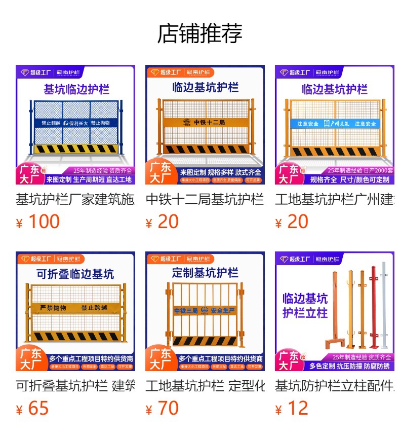 건설 현장 기본 구덩이 난간 광동 제조업체 건설 엔지니어링 이동식 안전 절연 임상 난간 기본 구덩이 난간스토어 가기