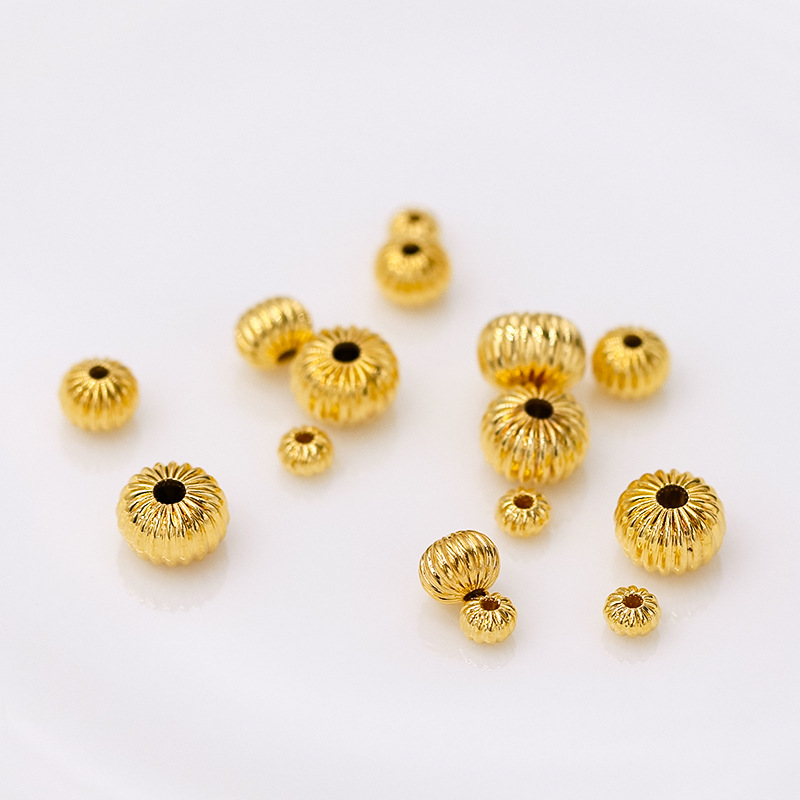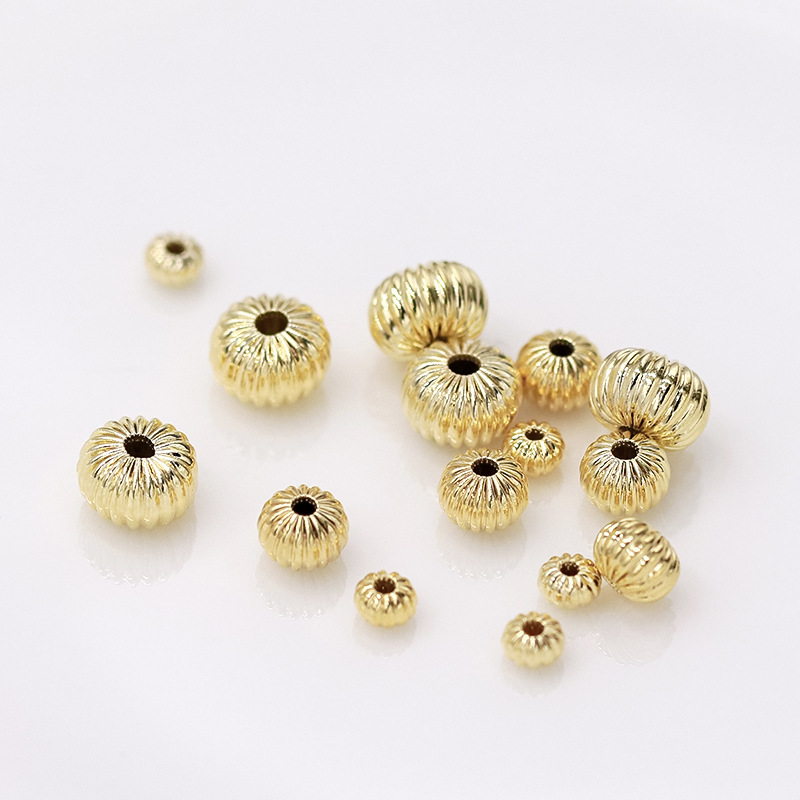 구리 도금 18K 트루 골드 플랫 호박 비즈 14K 팩 골드 컬러 유지 중공 랜턴 비즈 DIY 팔찌 수박 비즈 비즈스토어 가기