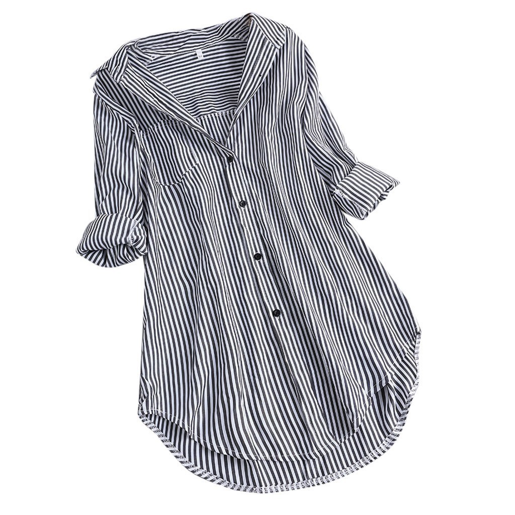 아마존 AliExpress 유럽과 미국 여성의 느슨한 세로 스트라이프 중간 길이 캐주얼 패션 여성 셔츠스토어 가기