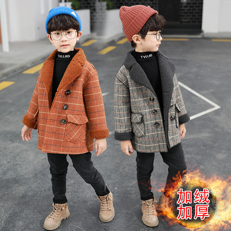 2024 대외 무역 아동 의류 겨울 의류 소년 코트 두꺼운 모직 코트 공장 직접 판매 아동 벨벳 격자 무늬 코트스토어 가기