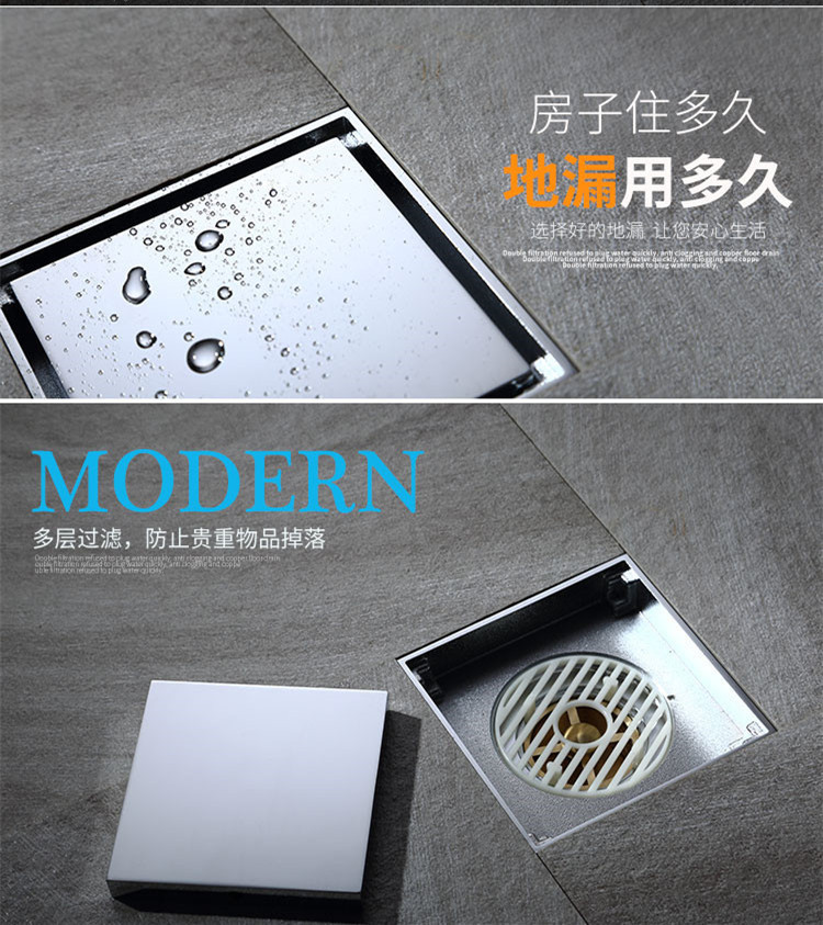 검은 탈취제 바닥 배수 화장실 욕실 대형 변위 직사각형 모든 구리 보이지 않는 바닥 배수 세탁기