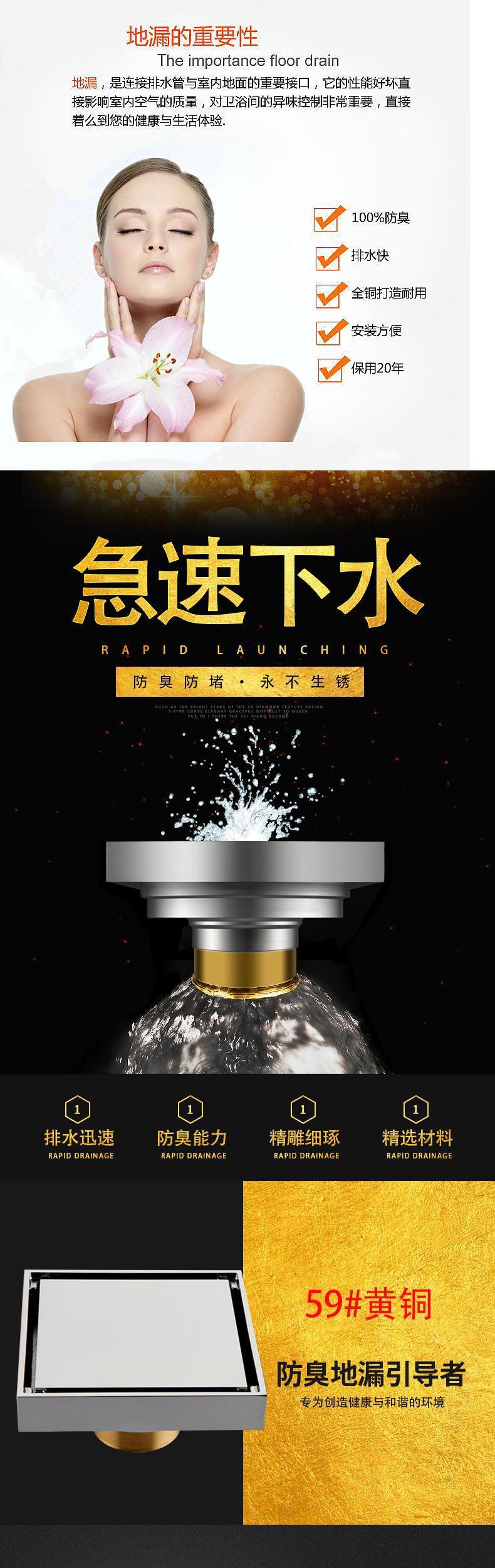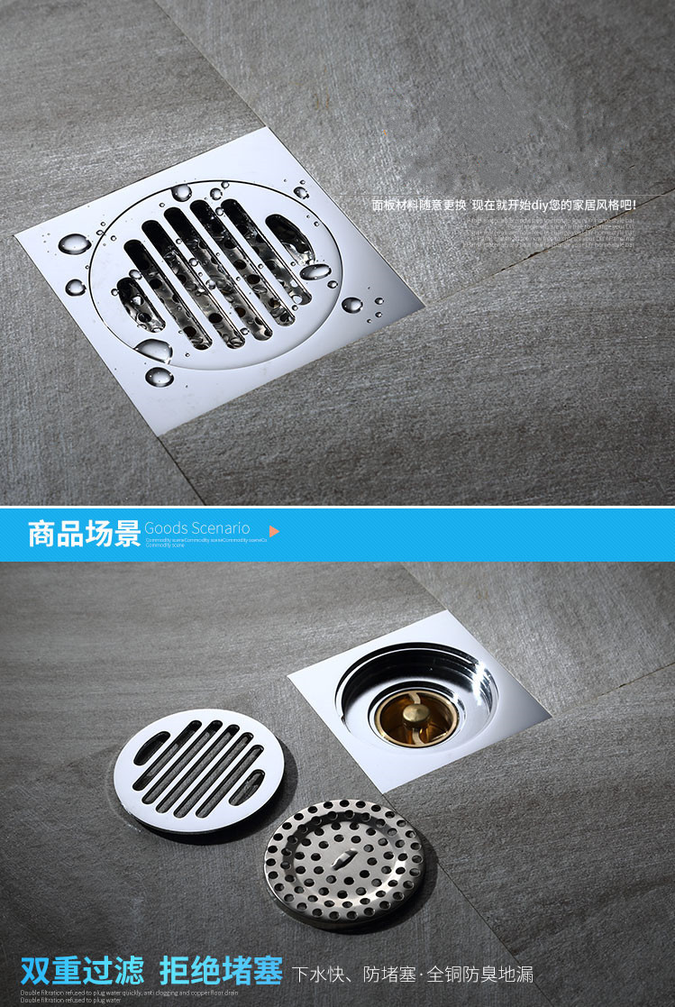 검은 탈취제 바닥 배수 화장실 욕실 대형 변위 직사각형 모든 구리 보이지 않는 바닥 배수 세탁기스토어 가기