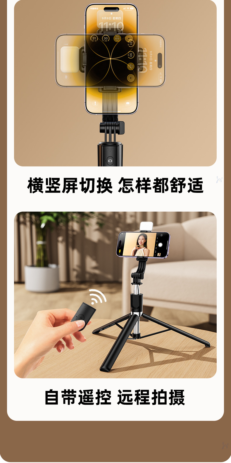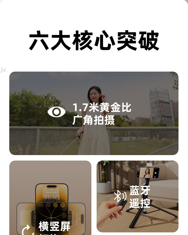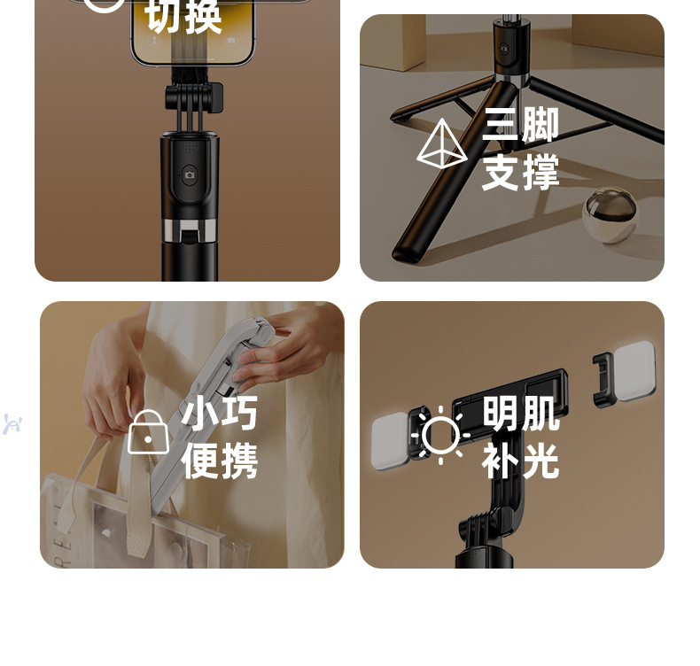 • 【 1.3m 】R1S 셀카봉(사각형 조명 포함) - 블랙