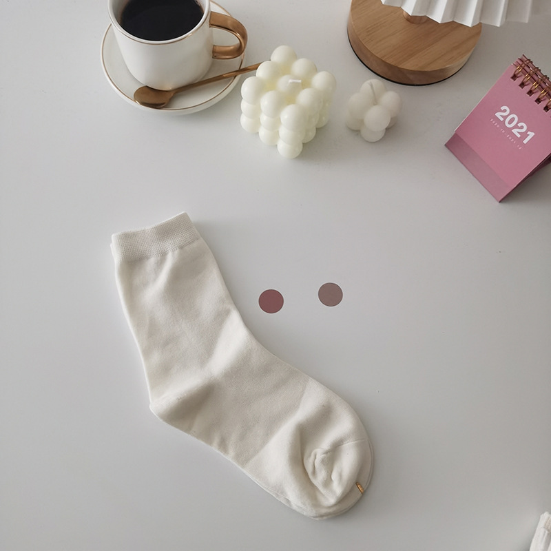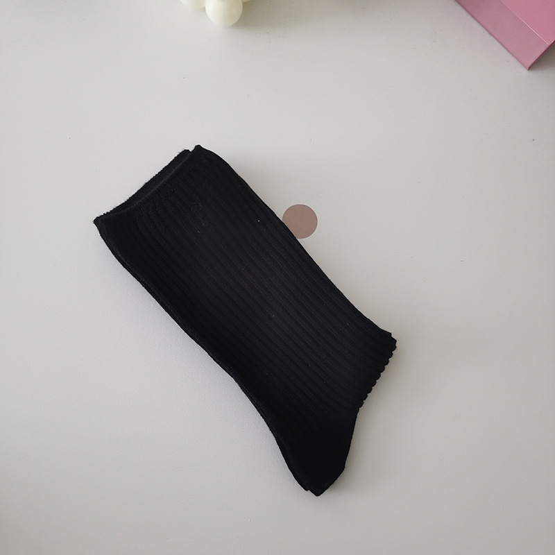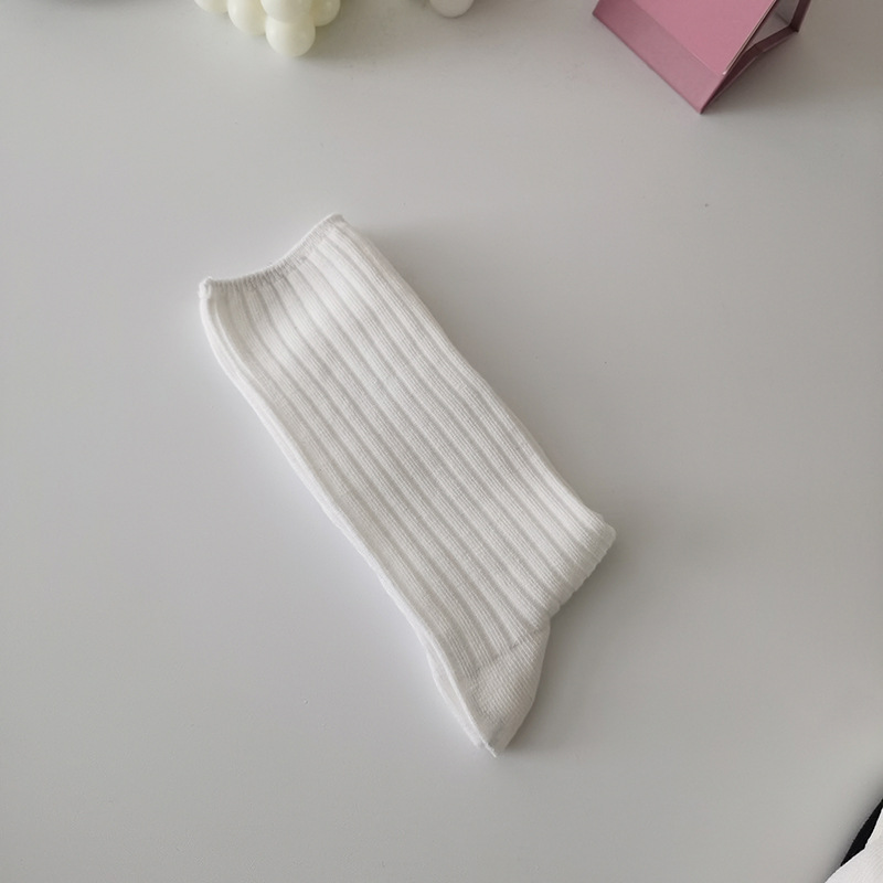 흑백 양말 여성용 중간 길이 양말 일본면 단색 여성 양말 봄과 가을 세로 줄무늬 스타킹 아카데믹 스타일 스택 스타킹스토어 가기