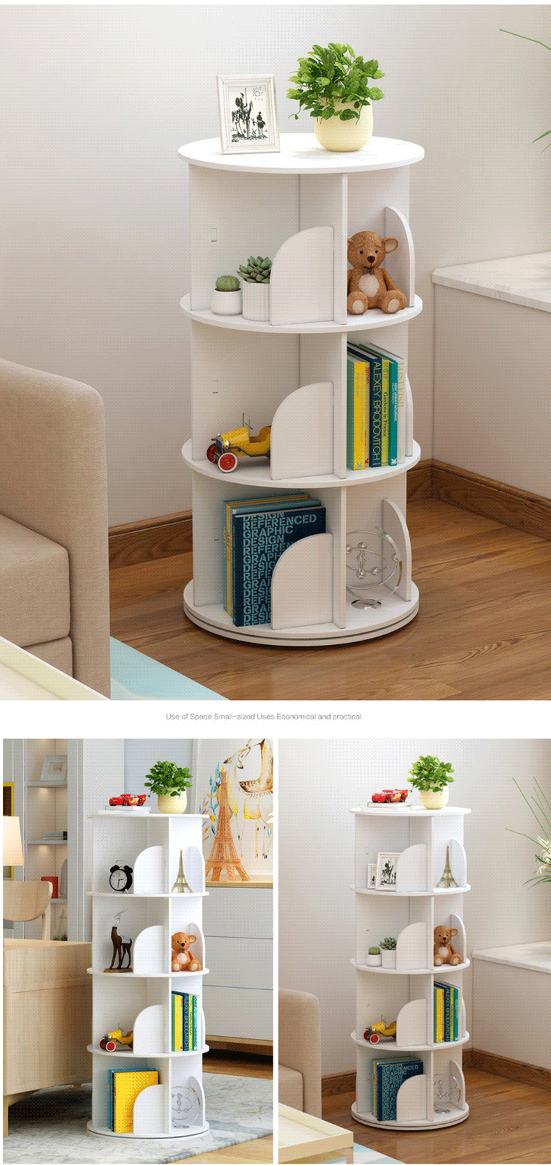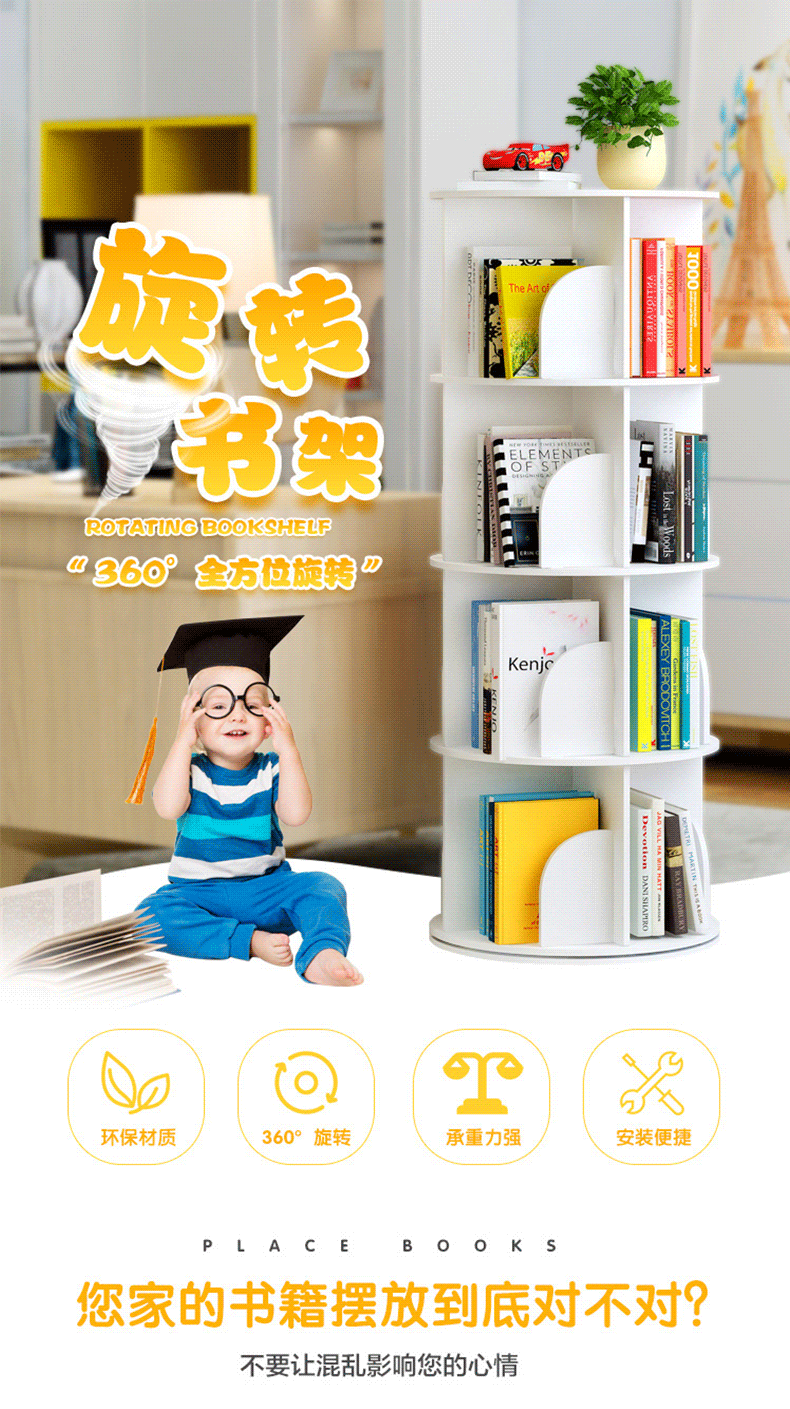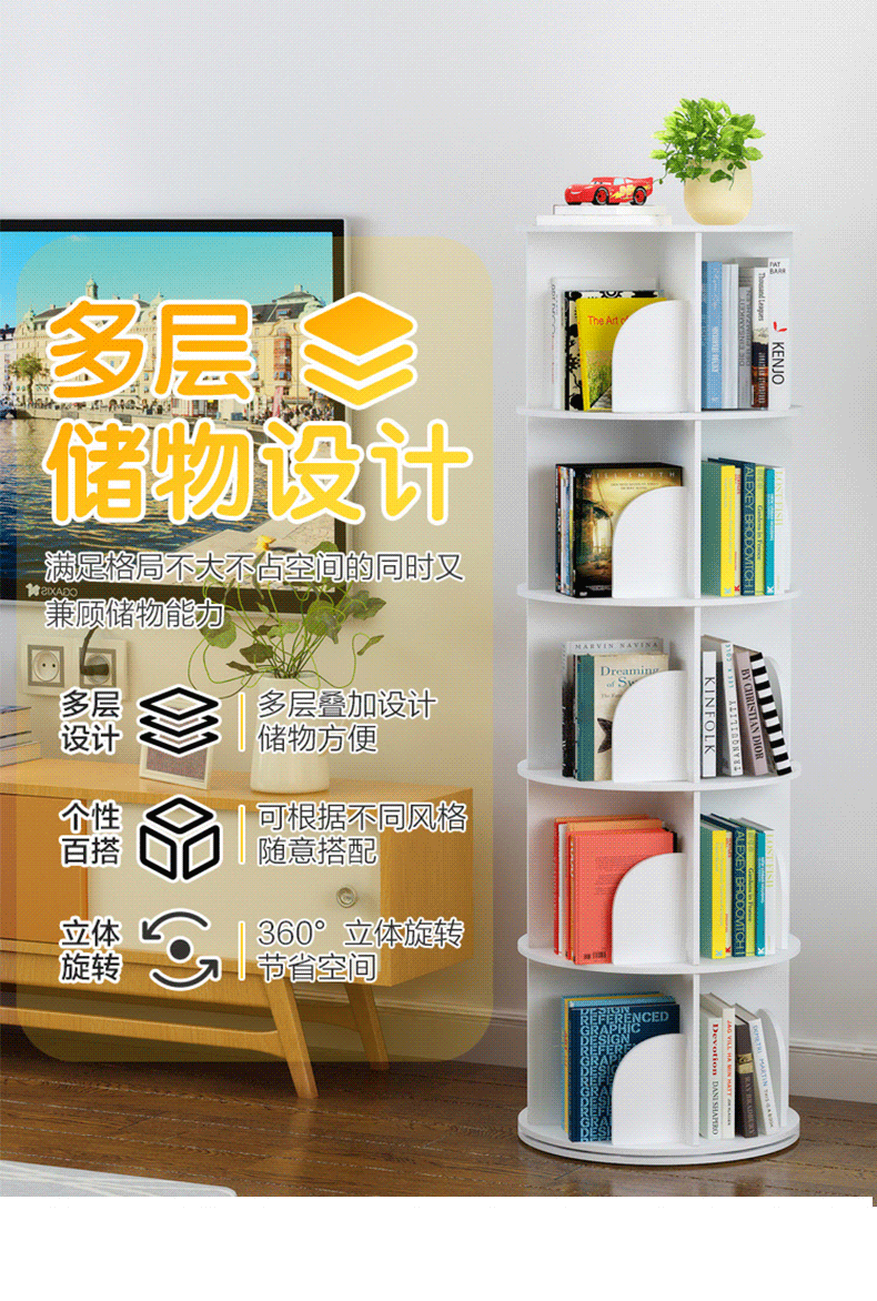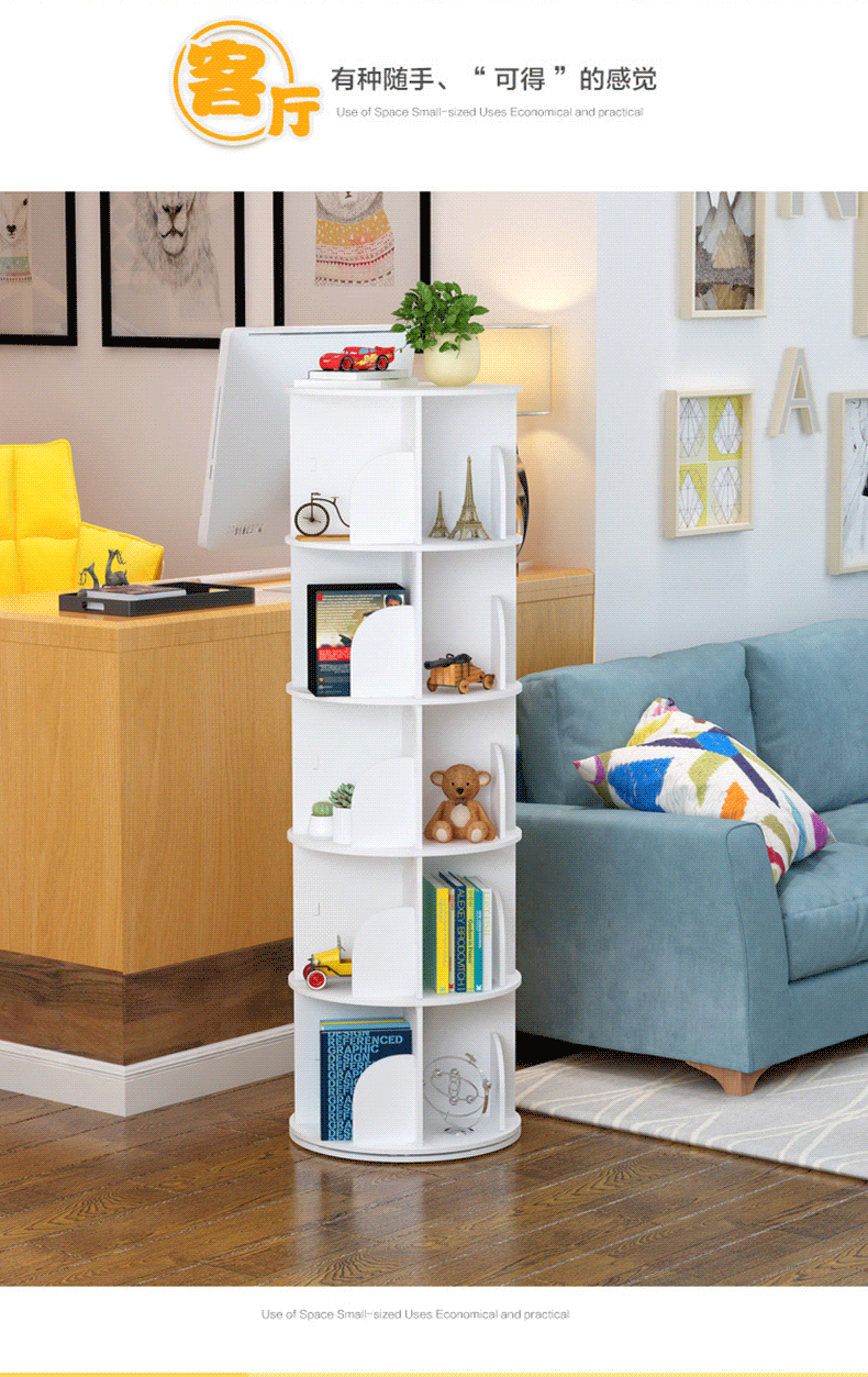 학생 회전 책장 다층 수납 선반 가정용 대용량 어린이 그림책 수납 선반 다기능