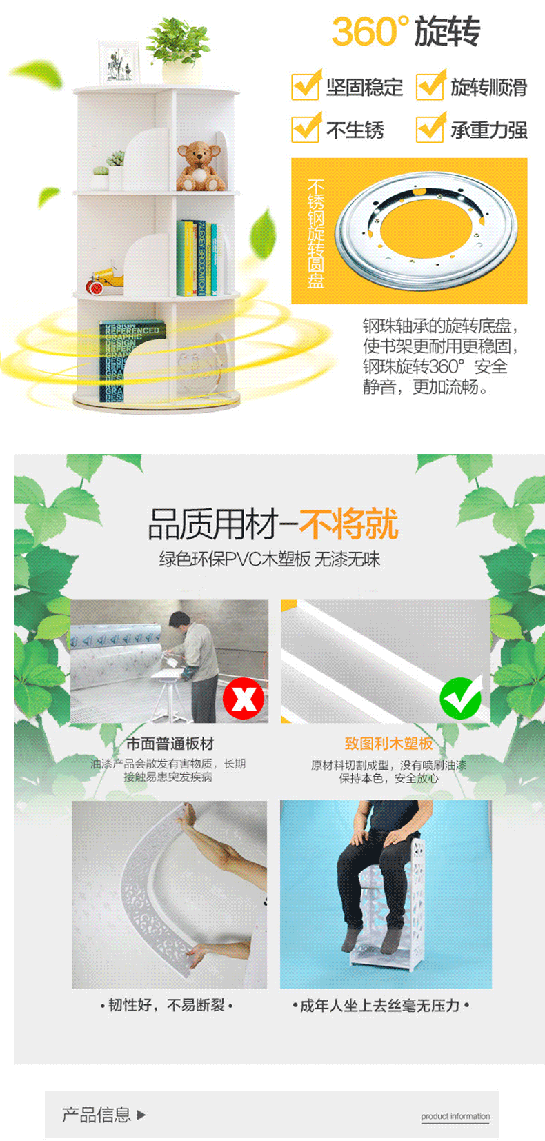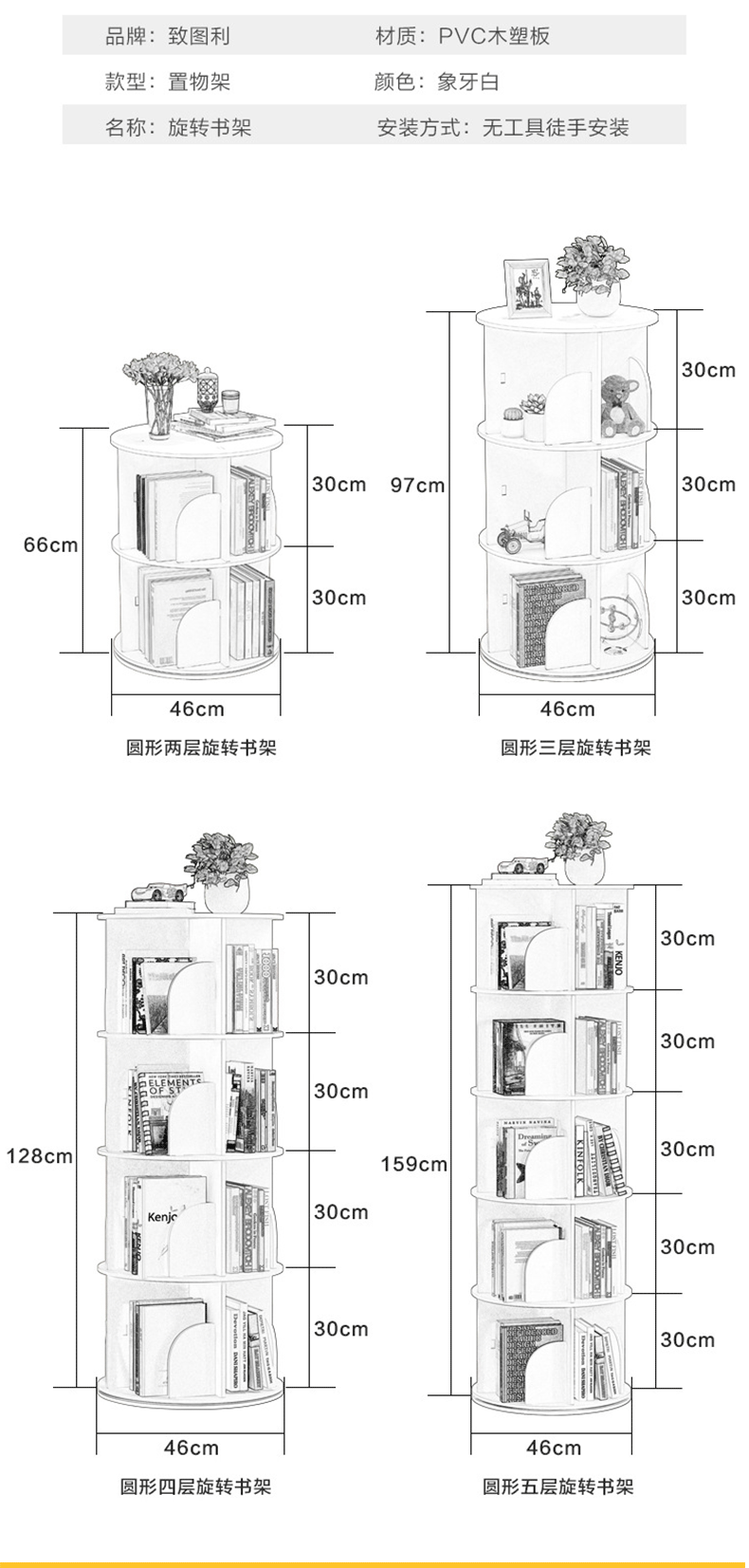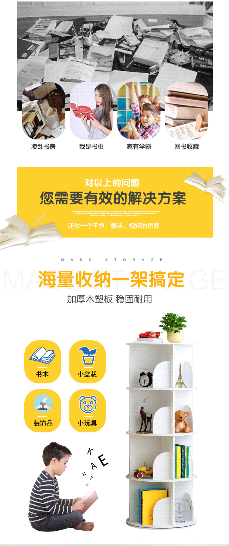 학생 회전 책장 다층 수납 선반 가정용 대용량 어린이 그림책 수납 선반 다기능